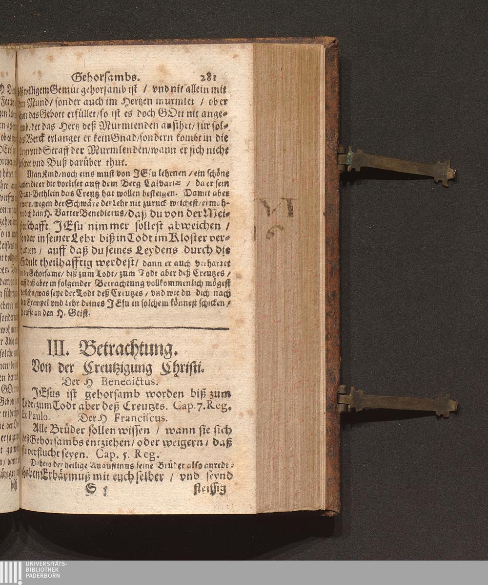 Zehen-Tägige Erspieglung Oder Ernewerung deß Geists : Jn welcher ein Gottliebende Seel durch Die 10. Tägige Einsamme/ in dem dreyfachen Spiegel der Reinigung/ Erleuchtung vnd Vereinbahrung sich kan ersehen ... / auß den Lehren der HH. Vätter gezogen/ vnd fürgestellt. Durch R. P. Marianum Schott, Conventual deß Fürstlichen Gottshauß Einsidlen Ordens deß H. V. Benedicti