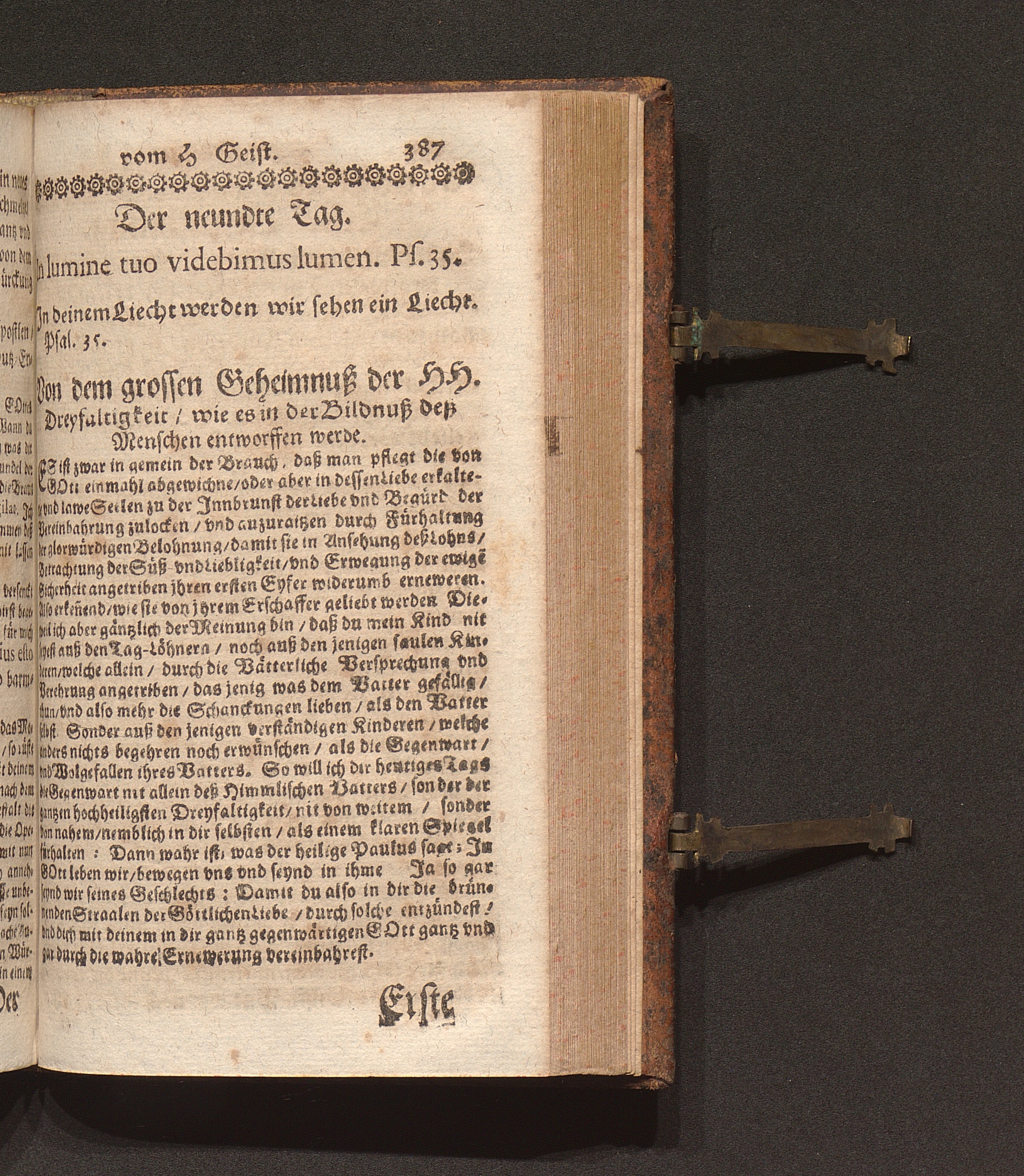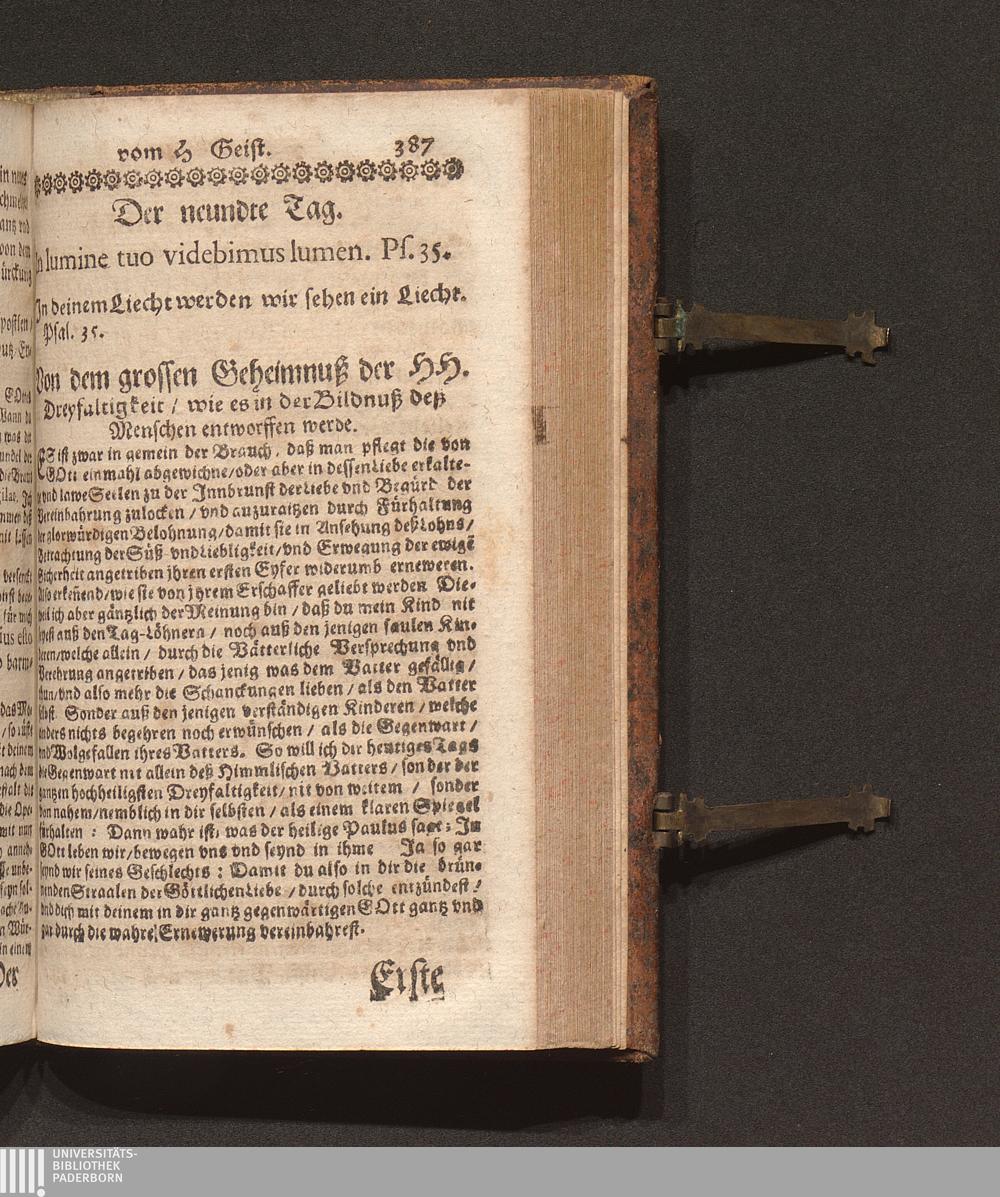 Zehen-Tägige Erspieglung Oder Ernewerung deß Geists : Jn welcher ein Gottliebende Seel durch Die 10. Tägige Einsamme/ in dem dreyfachen Spiegel der Reinigung/ Erleuchtung vnd Vereinbahrung sich kan ersehen ... / auß den Lehren der HH. Vätter gezogen/ vnd fürgestellt. Durch R. P. Marianum Schott, Conventual deß Fürstlichen Gottshauß Einsidlen Ordens deß H. V. Benedicti