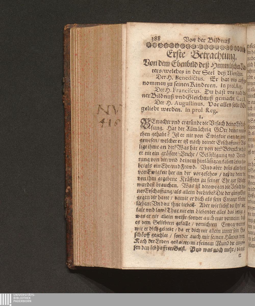 Zehen-Tägige Erspieglung Oder Ernewerung deß Geists : Jn welcher ein Gottliebende Seel durch Die 10. Tägige Einsamme/ in dem dreyfachen Spiegel der Reinigung/ Erleuchtung vnd Vereinbahrung sich kan ersehen ... / auß den Lehren der HH. Vätter gezogen/ vnd fürgestellt. Durch R. P. Marianum Schott, Conventual deß Fürstlichen Gottshauß Einsidlen Ordens deß H. V. Benedicti
