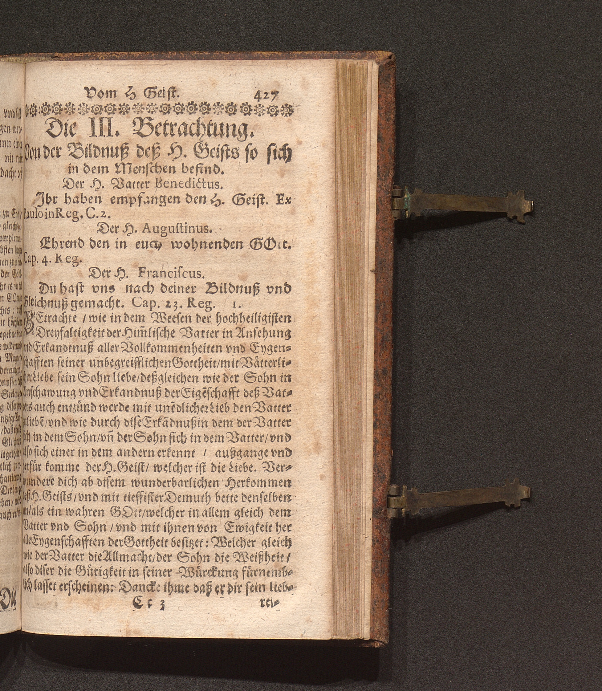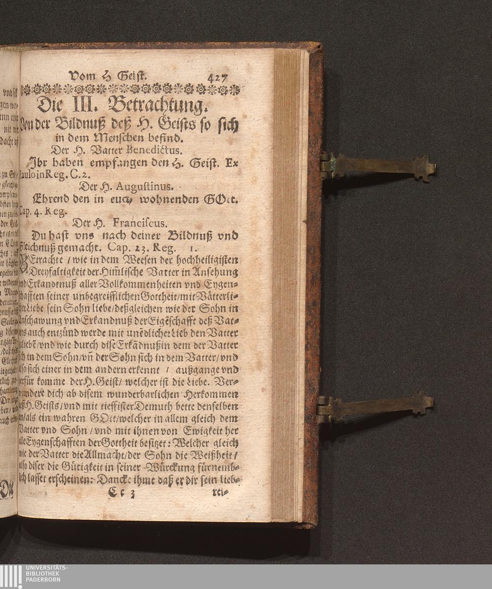 Zehen-Tägige Erspieglung Oder Ernewerung deß Geists : Jn welcher ein Gottliebende Seel durch Die 10. Tägige Einsamme/ in dem dreyfachen Spiegel der Reinigung/ Erleuchtung vnd Vereinbahrung sich kan ersehen ... / auß den Lehren der HH. Vätter gezogen/ vnd fürgestellt. Durch R. P. Marianum Schott, Conventual deß Fürstlichen Gottshauß Einsidlen Ordens deß H. V. Benedicti