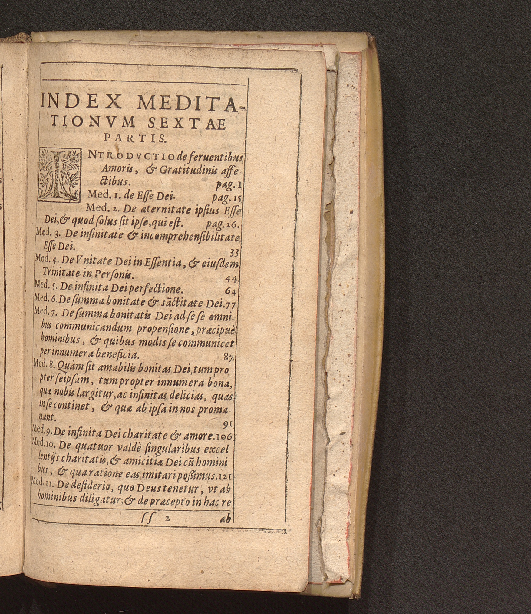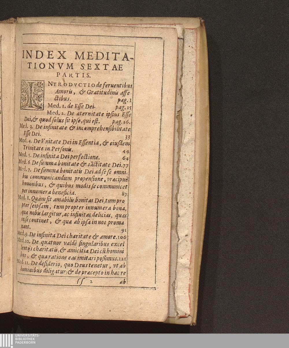 Index Meditationvm Sextæ Partis.
