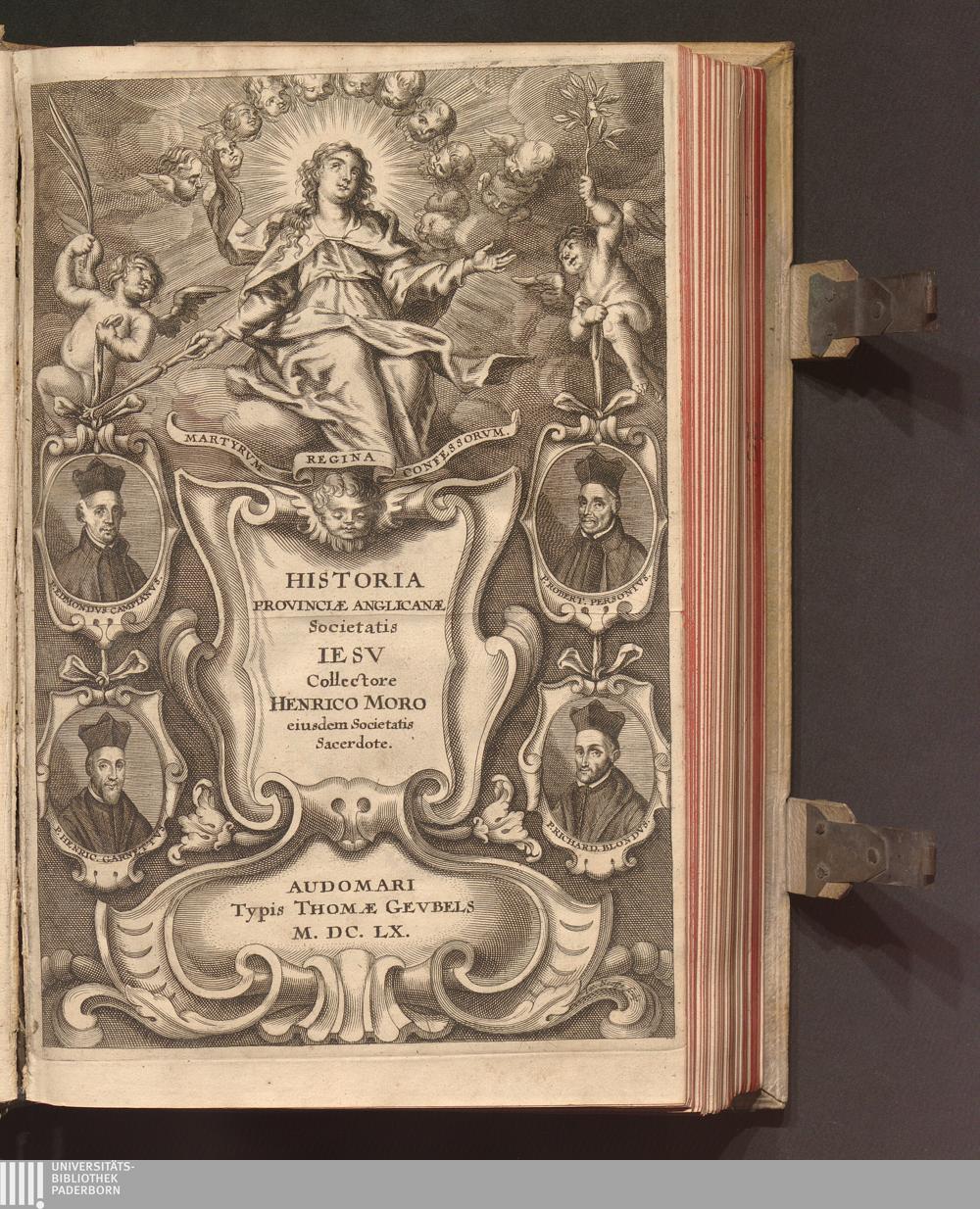 Historia Missionis Anglicanæ Societatis Iesv : Ab Anno Salvtis, M.D.XXX: Ad DC.XIX. Et Vice-Provinciæ Primvm, Tvm Provinciæ Ad Eivsdem Sæcvli Annvm XXXV. / Collectore Henrico Moro. Eivsdem Societatis Sacerdote