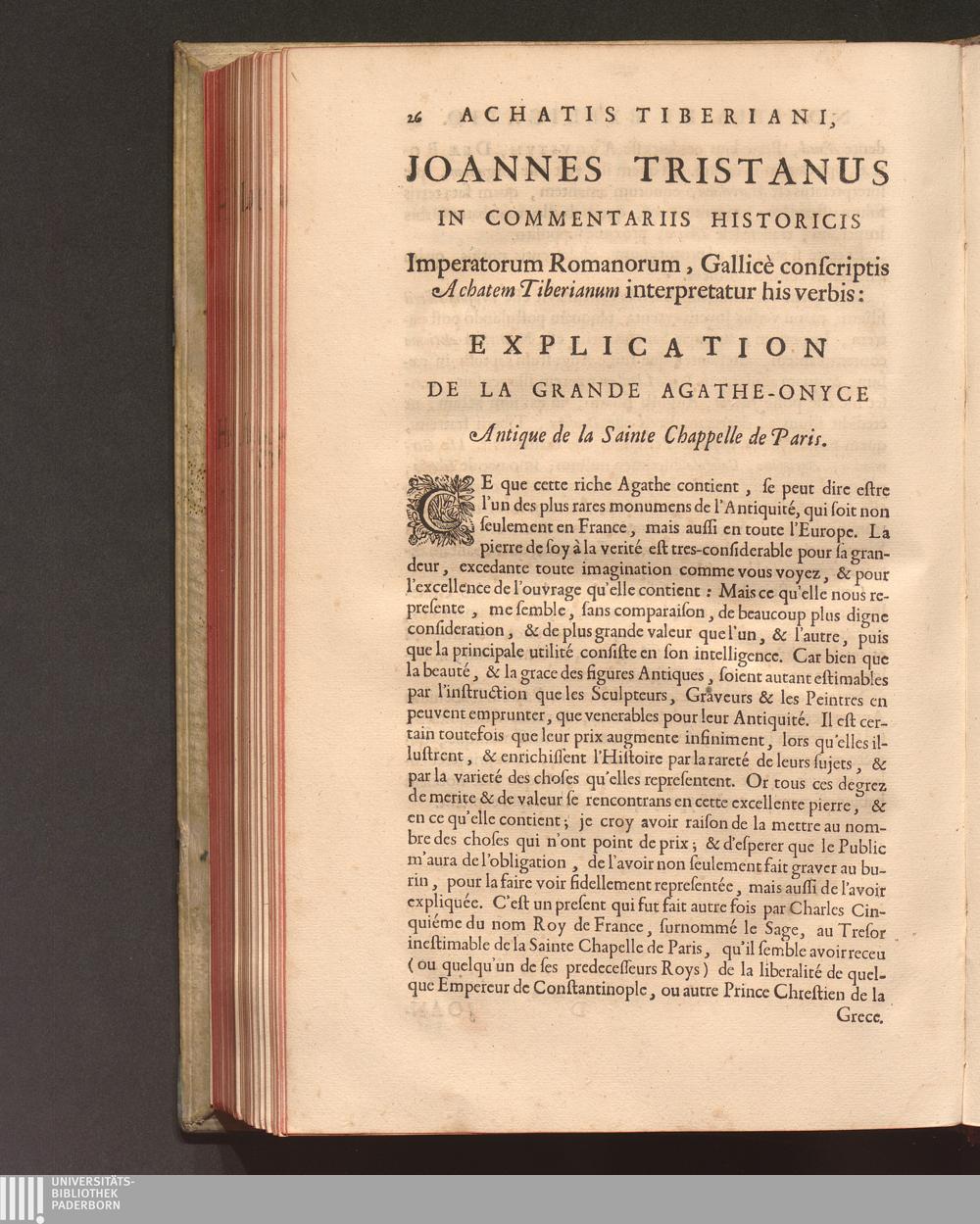 Achates Tiberianus, Sive Gemma Cæsarea, Antiquitate, Argumento, Arte, Historiâ, prorsùs incomparabilis, Et cui parem in Orbe Terrarum, non est reperire, D. Augusti Apotheosin, Imp. Cæs. Tiberii, Augustæque Juliæ Domus, Seriem & Iconas, Gentesque Bello captas Repræsentans ... / nova Notitia & Explicatio, Notis Historicis illustrata: Auctore Jacobo Le Roy, libero Barone S. R. I.