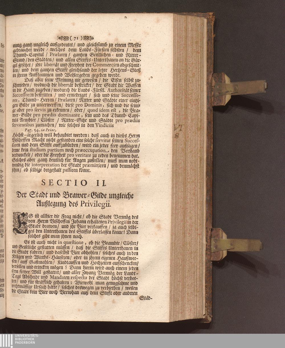 Speculum Veritatis Et Justitiæ: Repræsentans Pacem & Æquitatem Principis, Veritatem Facti, Et Juris Evidentiam Oppositum Caliginosæ Lampadi, Tribus Braxatoriæ Hildesiensis Pro Principe, Capitulo Cathedrali, Clero, Equestri Ordine, Urbibus, Patria, Populoque Hildesiensi Contra Monopolium Palliatum, Aviditatem Velatam, Miseriam Fucatam, Libertatem Naturalem Restrictam, Ingratitudinem Publicam Braxatorum Hildesiensium. Das ist Spiegel Der Warheit und Gerechtigkeit/ und Schutz der Natürlichen Freyheit Wider Den bemäntelten Eigennutz/ erdichtete Armuht/ offenbahre Undanckbarkeit/ und im gantzen Stifft angemastes alleiniges Braw Commercium der also genandten Brawer-Gilde zu Hildesheim. Verthätiget Für den Lands-Fürsten ...