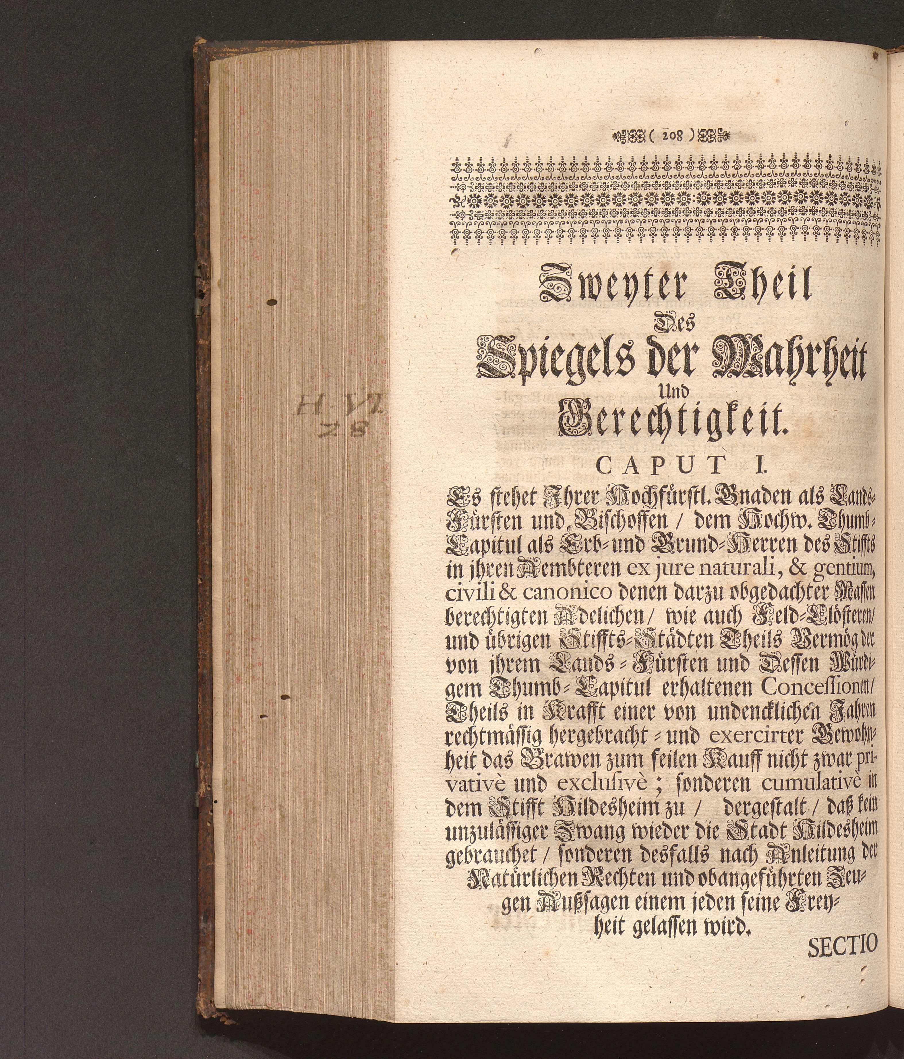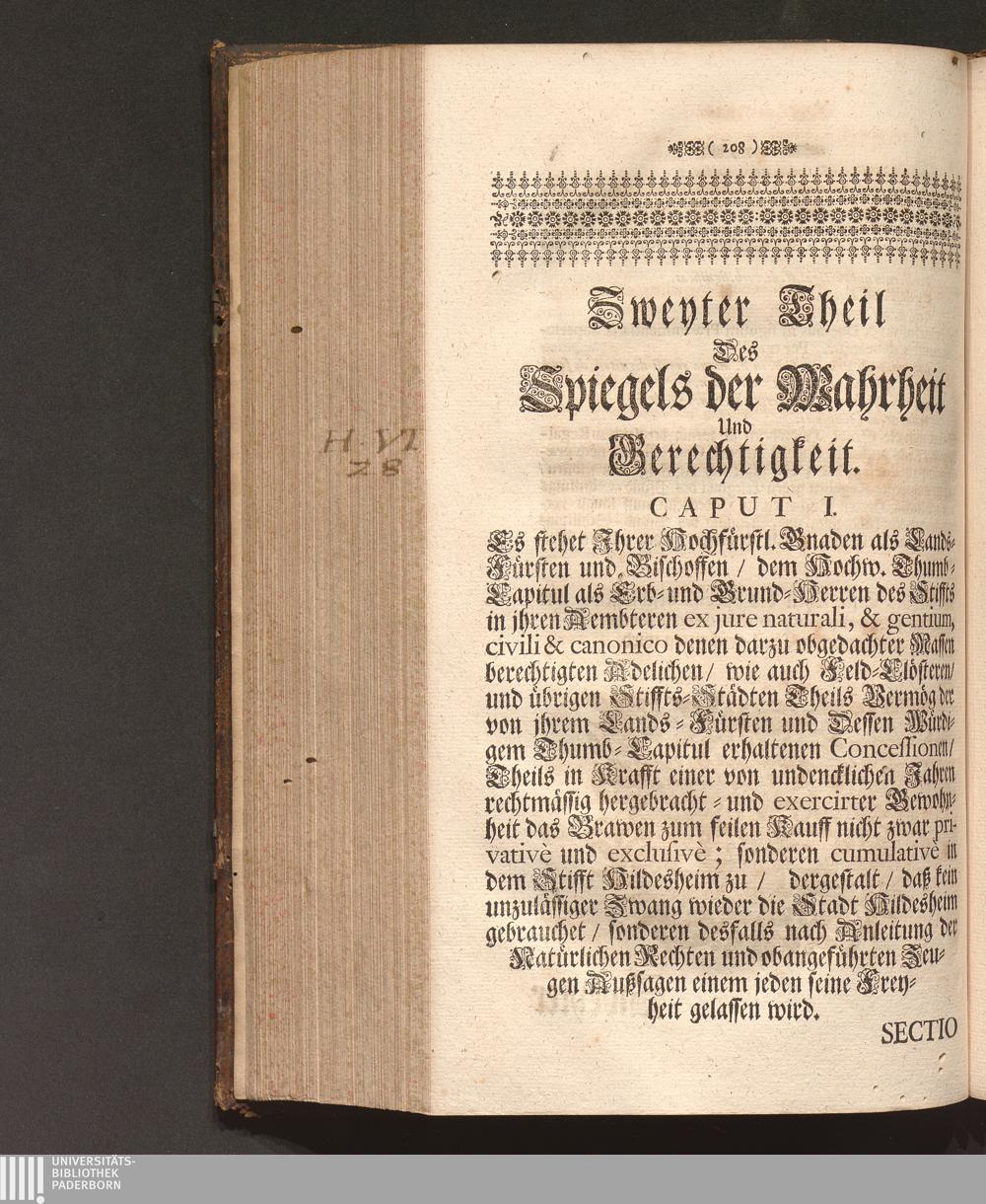 Speculum Veritatis Et Justitiæ: Repræsentans Pacem & Æquitatem Principis, Veritatem Facti, Et Juris Evidentiam Oppositum Caliginosæ Lampadi, Tribus Braxatoriæ Hildesiensis Pro Principe, Capitulo Cathedrali, Clero, Equestri Ordine, Urbibus, Patria, Populoque Hildesiensi Contra Monopolium Palliatum, Aviditatem Velatam, Miseriam Fucatam, Libertatem Naturalem Restrictam, Ingratitudinem Publicam Braxatorum Hildesiensium. Das ist Spiegel Der Warheit und Gerechtigkeit/ und Schutz der Natürlichen Freyheit Wider Den bemäntelten Eigennutz/ erdichtete Armuht/ offenbahre Undanckbarkeit/ und im gantzen Stifft angemastes alleiniges Braw Commercium der also genandten Brawer-Gilde zu Hildesheim. Verthätiget Für den Lands-Fürsten ...