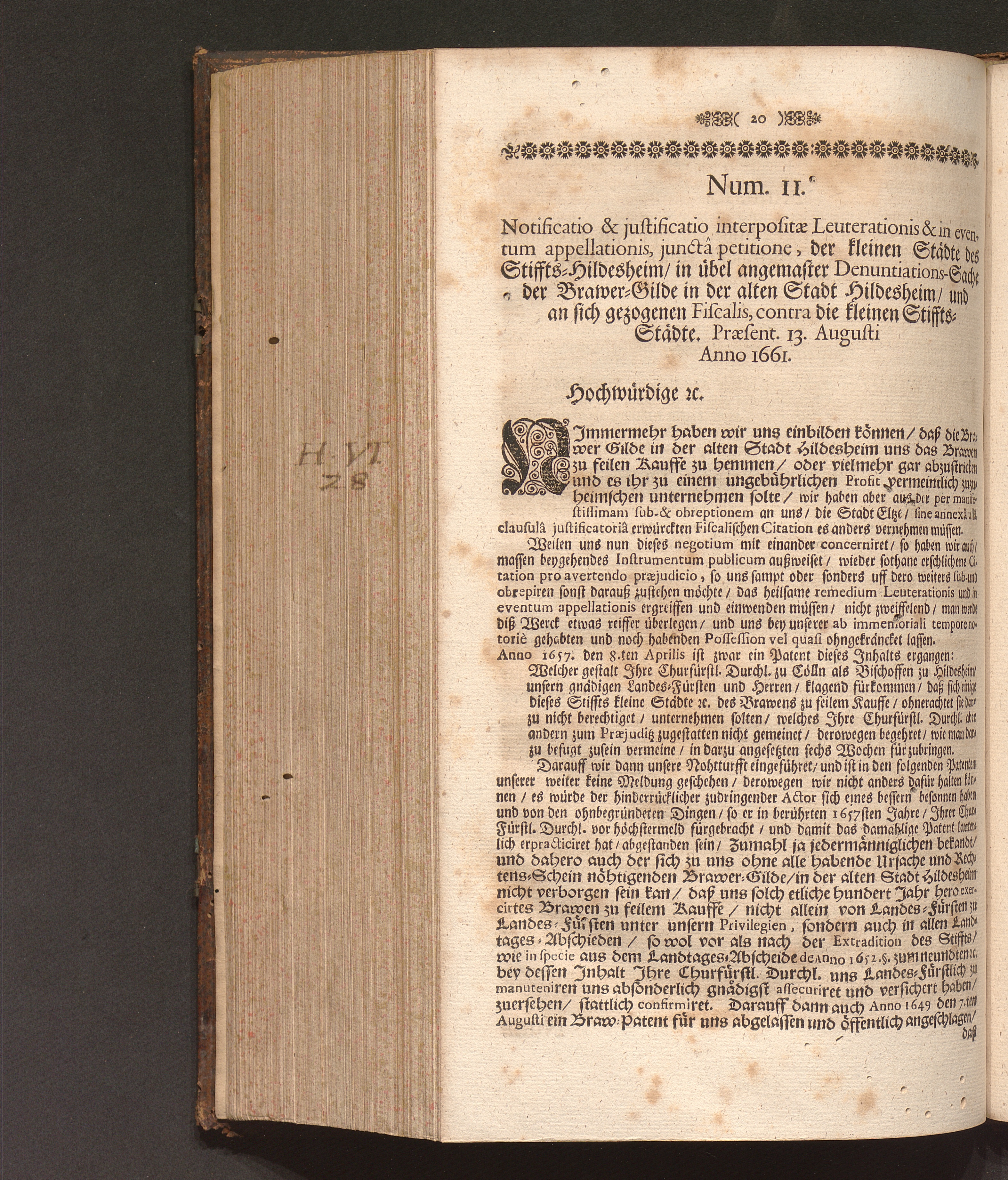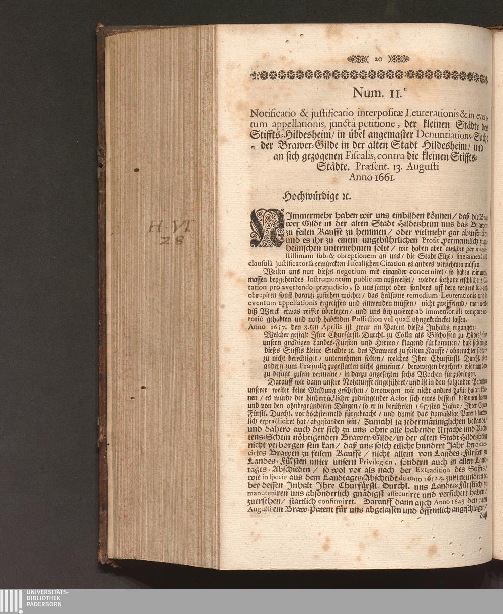 Speculum Veritatis Et Justitiæ: Repræsentans Pacem & Æquitatem Principis, Veritatem Facti, Et Juris Evidentiam Oppositum Caliginosæ Lampadi, Tribus Braxatoriæ Hildesiensis Pro Principe, Capitulo Cathedrali, Clero, Equestri Ordine, Urbibus, Patria, Populoque Hildesiensi Contra Monopolium Palliatum, Aviditatem Velatam, Miseriam Fucatam, Libertatem Naturalem Restrictam, Ingratitudinem Publicam Braxatorum Hildesiensium. Das ist Spiegel Der Warheit und Gerechtigkeit/ und Schutz der Natürlichen Freyheit Wider Den bemäntelten Eigennutz/ erdichtete Armuht/ offenbahre Undanckbarkeit/ und im gantzen Stifft angemastes alleiniges Braw Commercium der also genandten Brawer-Gilde zu Hildesheim. Verthätiget Für den Lands-Fürsten ...