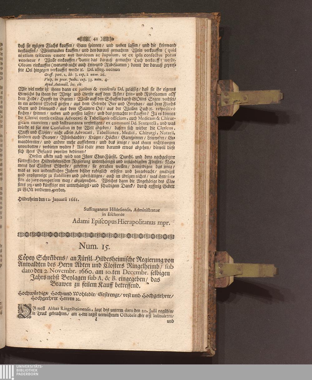 Speculum Veritatis Et Justitiæ: Repræsentans Pacem & Æquitatem Principis, Veritatem Facti, Et Juris Evidentiam Oppositum Caliginosæ Lampadi, Tribus Braxatoriæ Hildesiensis Pro Principe, Capitulo Cathedrali, Clero, Equestri Ordine, Urbibus, Patria, Populoque Hildesiensi Contra Monopolium Palliatum, Aviditatem Velatam, Miseriam Fucatam, Libertatem Naturalem Restrictam, Ingratitudinem Publicam Braxatorum Hildesiensium. Das ist Spiegel Der Warheit und Gerechtigkeit/ und Schutz der Natürlichen Freyheit Wider Den bemäntelten Eigennutz/ erdichtete Armuht/ offenbahre Undanckbarkeit/ und im gantzen Stifft angemastes alleiniges Braw Commercium der also genandten Brawer-Gilde zu Hildesheim. Verthätiget Für den Lands-Fürsten ...