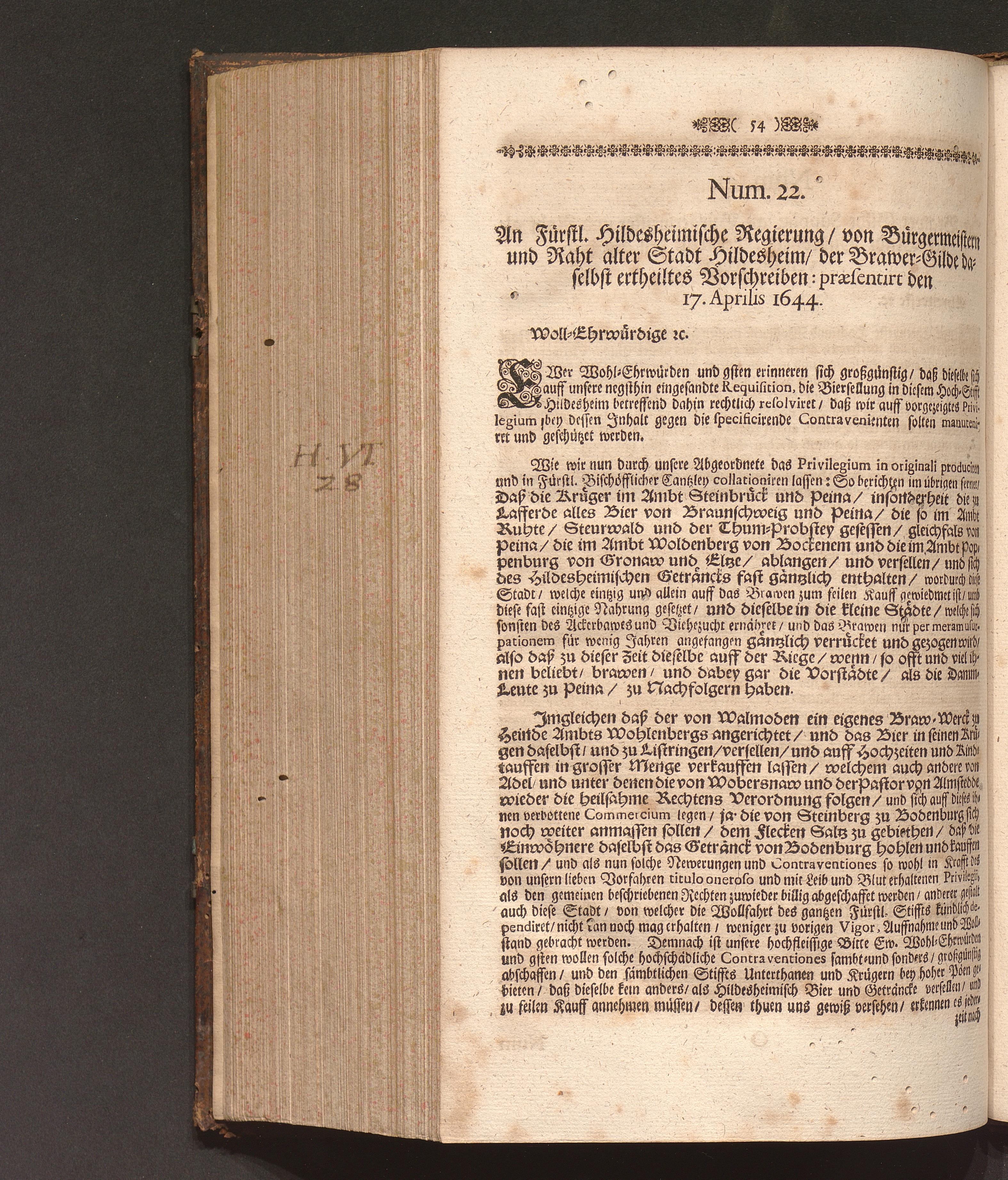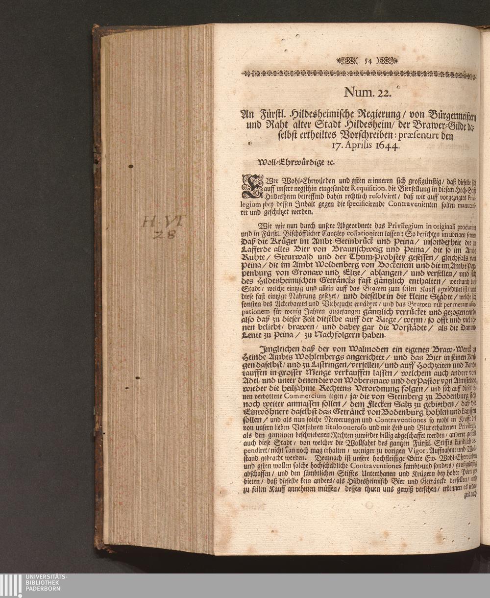 Speculum Veritatis Et Justitiæ: Repræsentans Pacem & Æquitatem Principis, Veritatem Facti, Et Juris Evidentiam Oppositum Caliginosæ Lampadi, Tribus Braxatoriæ Hildesiensis Pro Principe, Capitulo Cathedrali, Clero, Equestri Ordine, Urbibus, Patria, Populoque Hildesiensi Contra Monopolium Palliatum, Aviditatem Velatam, Miseriam Fucatam, Libertatem Naturalem Restrictam, Ingratitudinem Publicam Braxatorum Hildesiensium. Das ist Spiegel Der Warheit und Gerechtigkeit/ und Schutz der Natürlichen Freyheit Wider Den bemäntelten Eigennutz/ erdichtete Armuht/ offenbahre Undanckbarkeit/ und im gantzen Stifft angemastes alleiniges Braw Commercium der also genandten Brawer-Gilde zu Hildesheim. Verthätiget Für den Lands-Fürsten ...