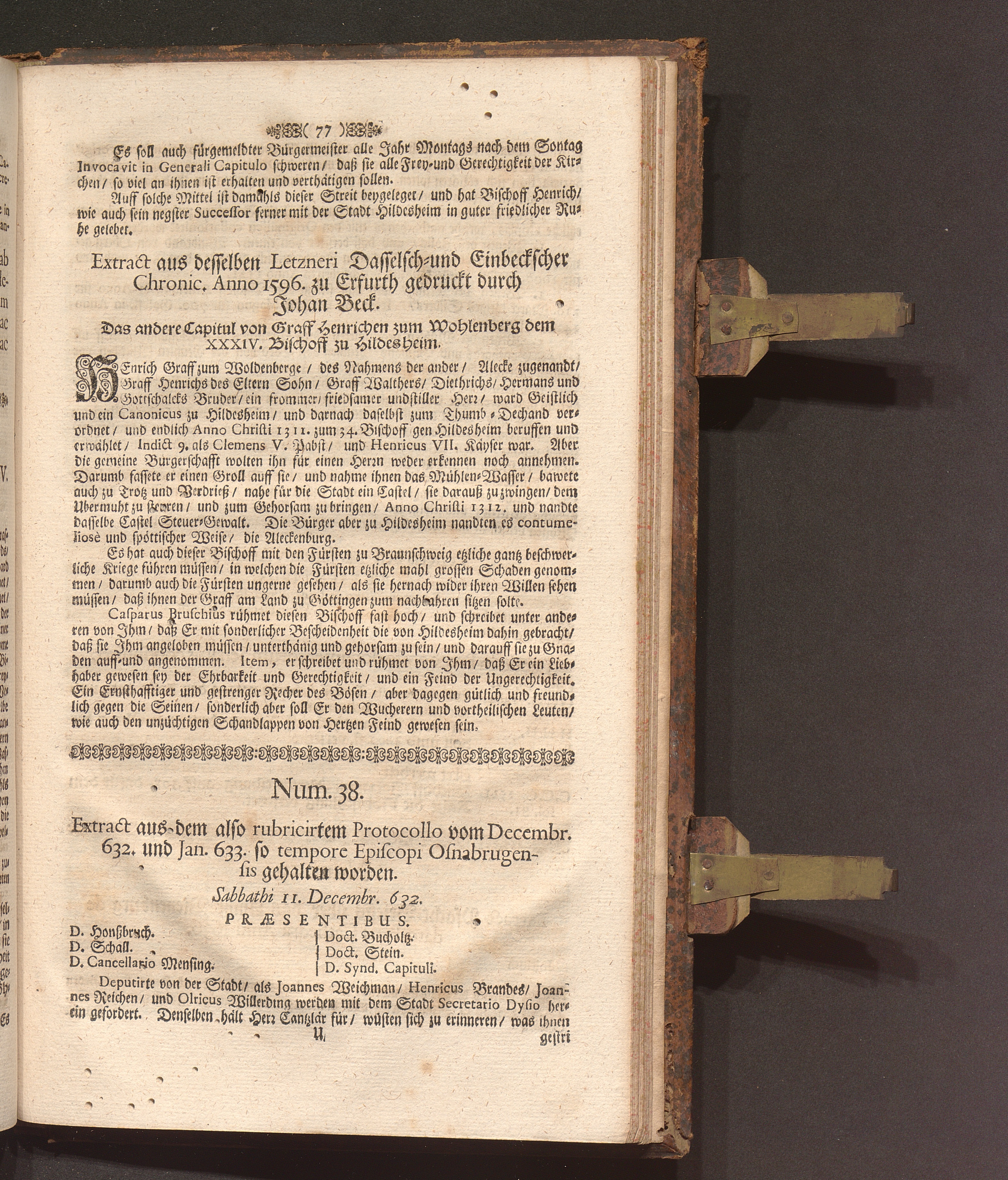 Speculum Veritatis Et Justitiæ: Repræsentans Pacem & Æquitatem Principis, Veritatem Facti, Et Juris Evidentiam Oppositum Caliginosæ Lampadi, Tribus Braxatoriæ Hildesiensis Pro Principe, Capitulo Cathedrali, Clero, Equestri Ordine, Urbibus, Patria, Populoque Hildesiensi Contra Monopolium Palliatum, Aviditatem Velatam, Miseriam Fucatam, Libertatem Naturalem Restrictam, Ingratitudinem Publicam Braxatorum Hildesiensium. Das ist Spiegel Der Warheit und Gerechtigkeit/ und Schutz der Natürlichen Freyheit Wider Den bemäntelten Eigennutz/ erdichtete Armuht/ offenbahre Undanckbarkeit/ und im gantzen Stifft angemastes alleiniges Braw Commercium der also genandten Brawer-Gilde zu Hildesheim. Verthätiget Für den Lands-Fürsten ...