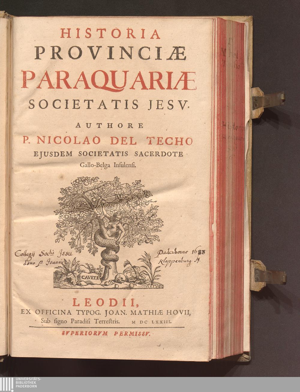 Historia Provinciæ Paraquariæ Societatis Jesv / Authore P. Nicolao Del Techo Ejusdem Societatis Sacerdote Gallo-Belga Insulensi