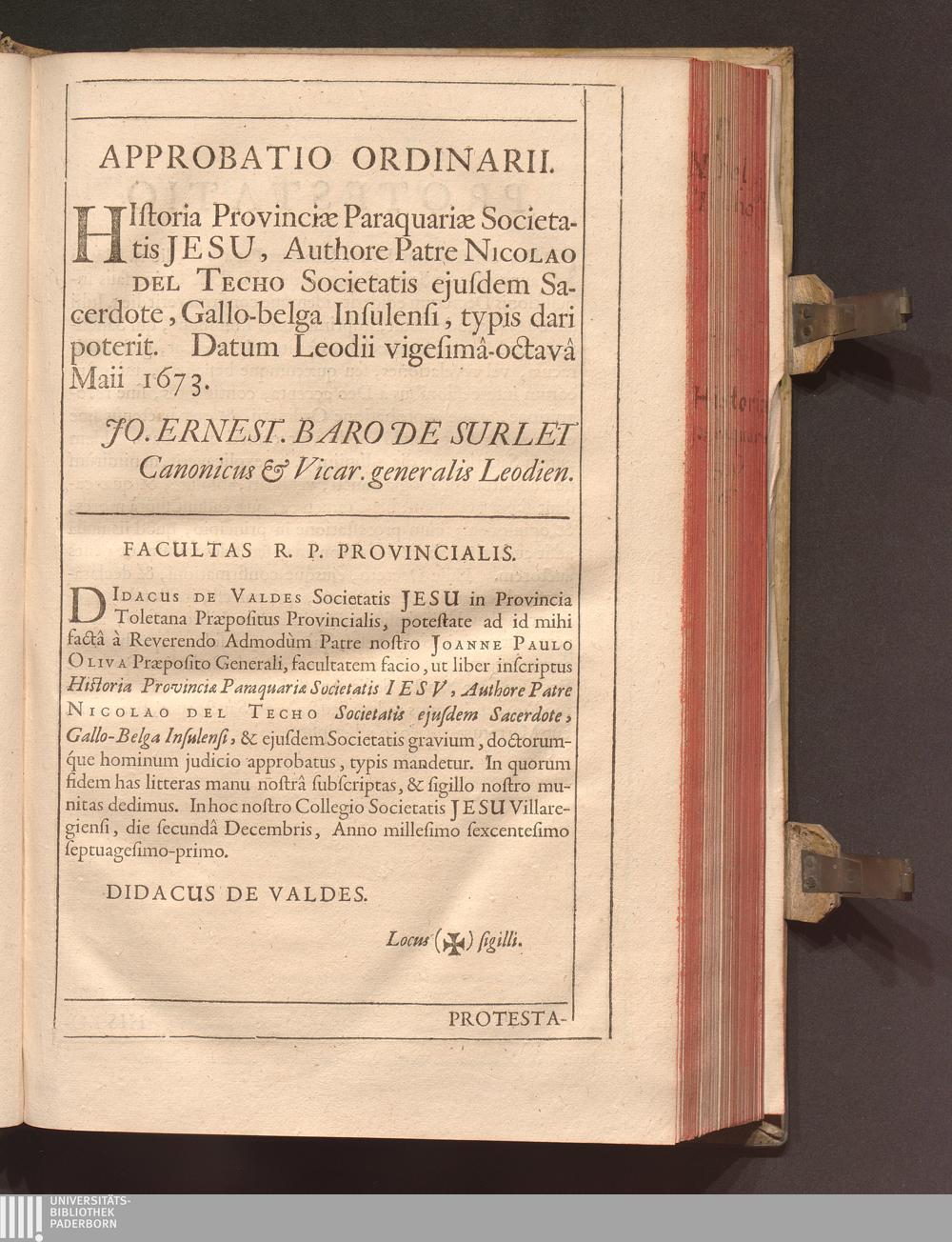 Historia Provinciæ Paraquariæ Societatis Jesv / Authore P. Nicolao Del Techo Ejusdem Societatis Sacerdote Gallo-Belga Insulensi