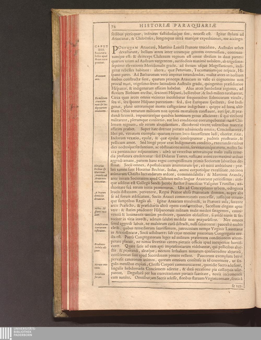 Cap. 14. Societatis sedes apud Araucanos ponitur.