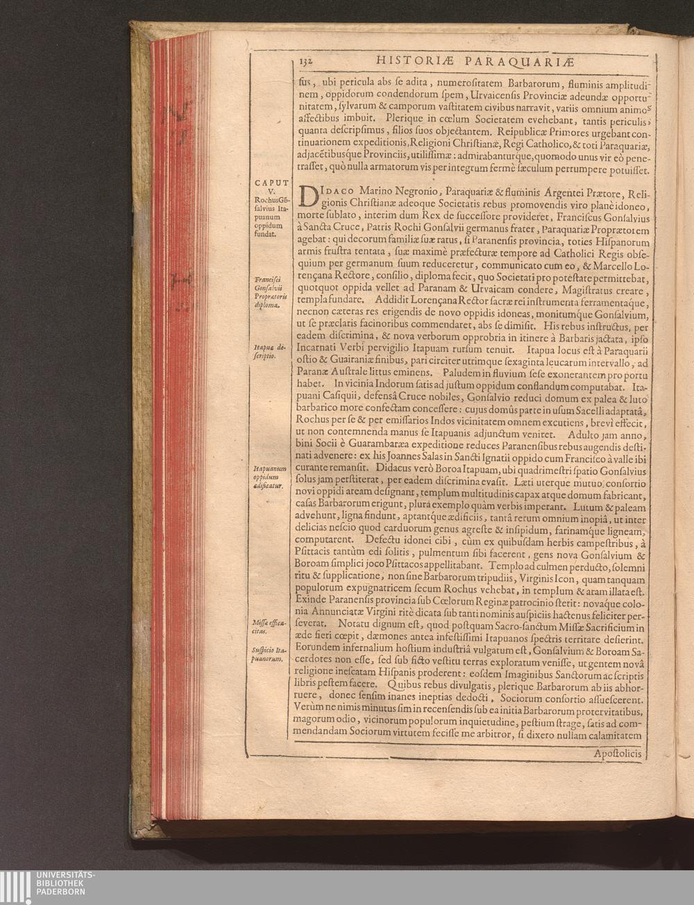 Cap. 5. Rochus Gonsalvius Itapuanum oppidum fundat.