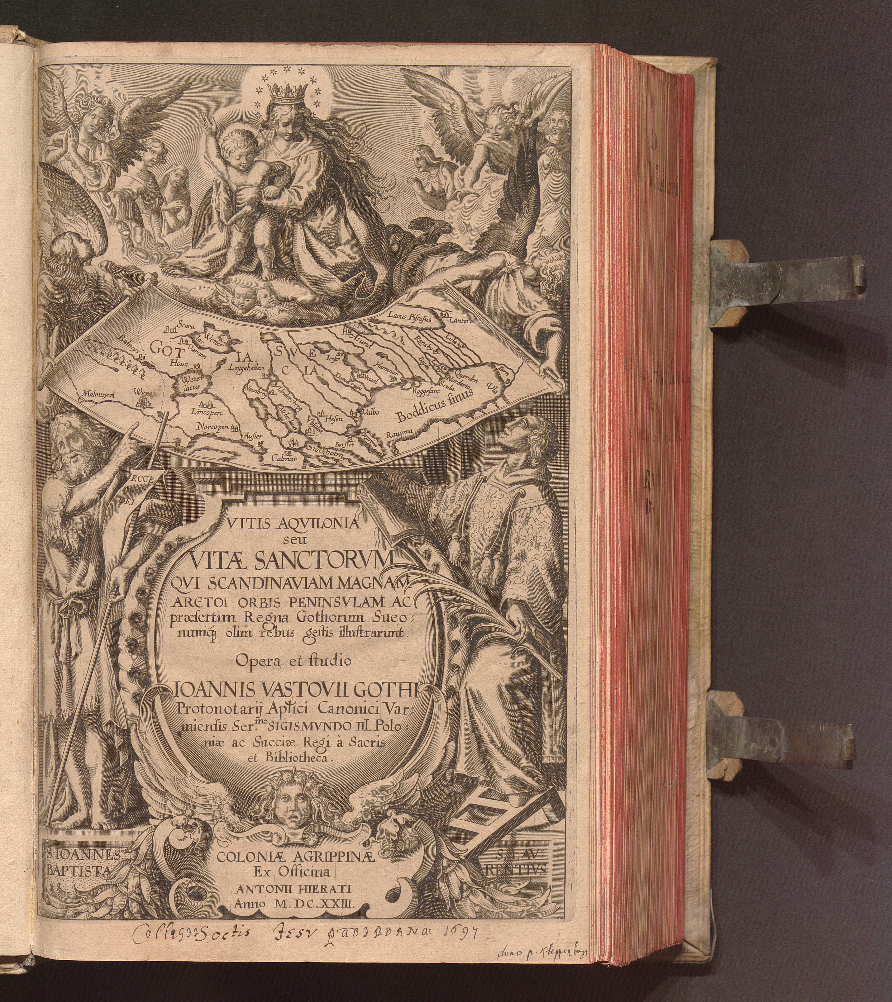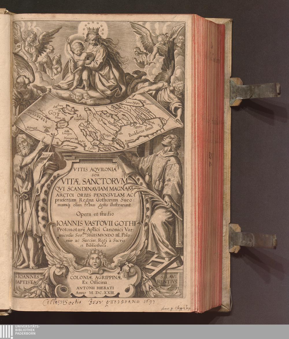 Vitis Aqvilonia seu Vitæ Sanctorvm Qvi Scandinaviam Magnam Arctoi Orbis Peninsvlam Ac præsertim Regna Gothorum Sueonumq[ue] olim rebus gestis illustrarunt / Opera et studio Ioannis Vastovii Gothi Protonotarij Ap[osto]lici Canonici Varmiensis ...
