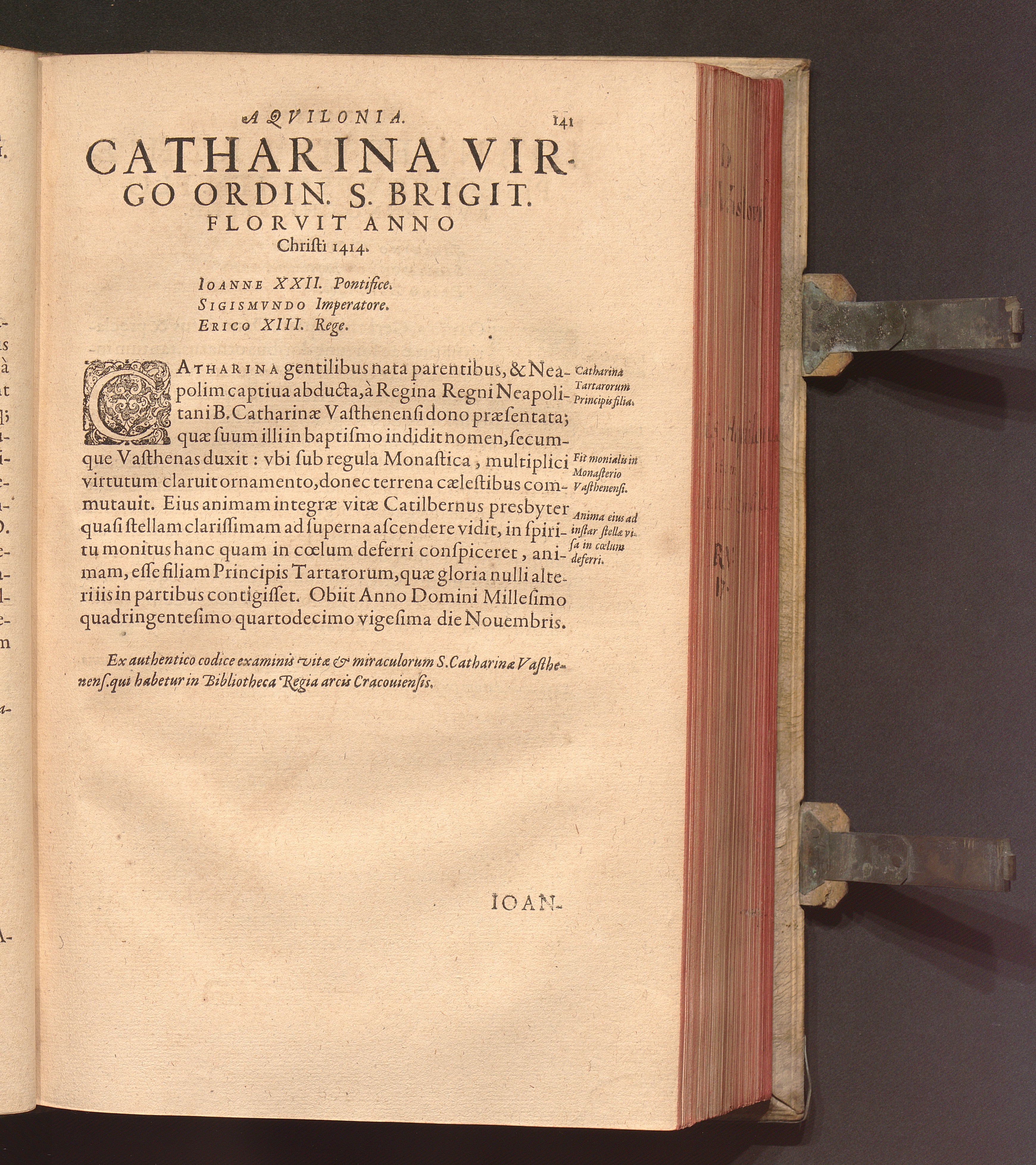 Vitis Aqvilonia seu Vitæ Sanctorvm Qvi Scandinaviam Magnam Arctoi Orbis Peninsvlam Ac præsertim Regna Gothorum Sueonumq[ue] olim rebus gestis illustrarunt / Opera et studio Ioannis Vastovii Gothi Protonotarij Ap[osto]lici Canonici Varmiensis ...