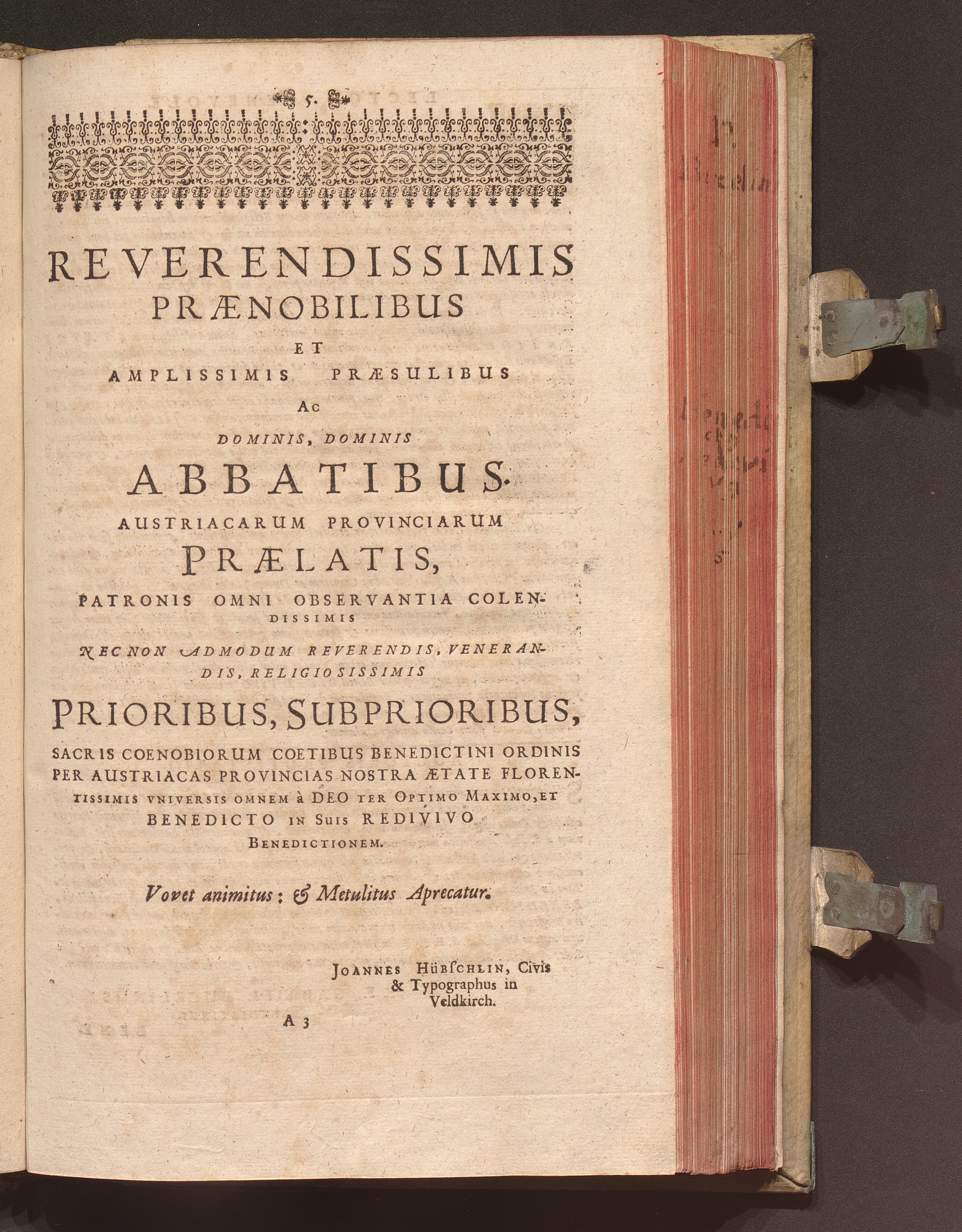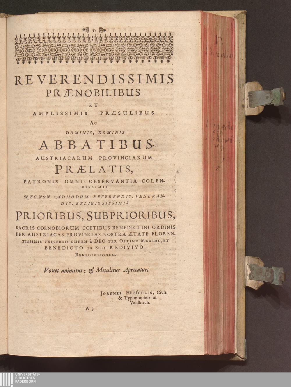 Benedictus Redivivus Hoc est: Benedictinj Ordinis Vetustißimi Amplißimique, Nostra, ac supera ætate Jmmarcescibilis Vigor, ac Viror : Anniversariâ Vernantiâ Chronologicè comprobatus, ac demonstratus Ab anno Christi M. D. Ad Præsentem Usque Ætatem, Et Annos Nostros, Jn Quo ... Operationes Jn Effusione Mirabili sui Spiritus ... quam compendiosissimè exhibe[n]tur / Opera, & Studio R. P. F. Gabrielis Bucelini Ascetæ Benedictini Imperialis Monasterij VVeingartensis Prioris S. Joannis Bapt. in Oppido Rhætiæ Superioris Veldkirchensi