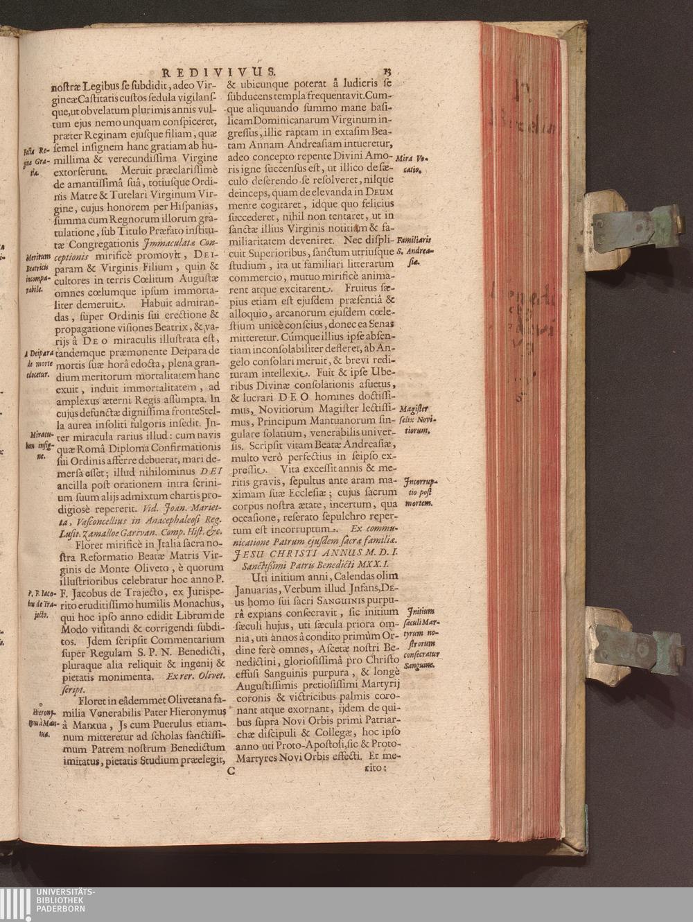 Benedictus Redivivus Hoc est: Benedictinj Ordinis Vetustißimi Amplißimique, Nostra, ac supera ætate Jmmarcescibilis Vigor, ac Viror : Anniversariâ Vernantiâ Chronologicè comprobatus, ac demonstratus Ab anno Christi M. D. Ad Præsentem Usque Ætatem, Et Annos Nostros, Jn Quo ... Operationes Jn Effusione Mirabili sui Spiritus ... quam compendiosissimè exhibe[n]tur / Opera, & Studio R. P. F. Gabrielis Bucelini Ascetæ Benedictini Imperialis Monasterij VVeingartensis Prioris S. Joannis Bapt. in Oppido Rhætiæ Superioris Veldkirchensi