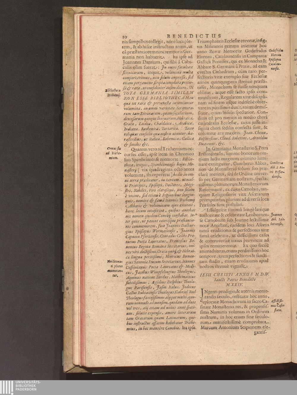 Benedictus Redivivus Hoc est: Benedictinj Ordinis Vetustißimi Amplißimique, Nostra, ac supera ætate Jmmarcescibilis Vigor, ac Viror : Anniversariâ Vernantiâ Chronologicè comprobatus, ac demonstratus Ab anno Christi M. D. Ad Præsentem Usque Ætatem, Et Annos Nostros, Jn Quo ... Operationes Jn Effusione Mirabili sui Spiritus ... quam compendiosissimè exhibe[n]tur / Opera, & Studio R. P. F. Gabrielis Bucelini Ascetæ Benedictini Imperialis Monasterij VVeingartensis Prioris S. Joannis Bapt. in Oppido Rhætiæ Superioris Veldkirchensi