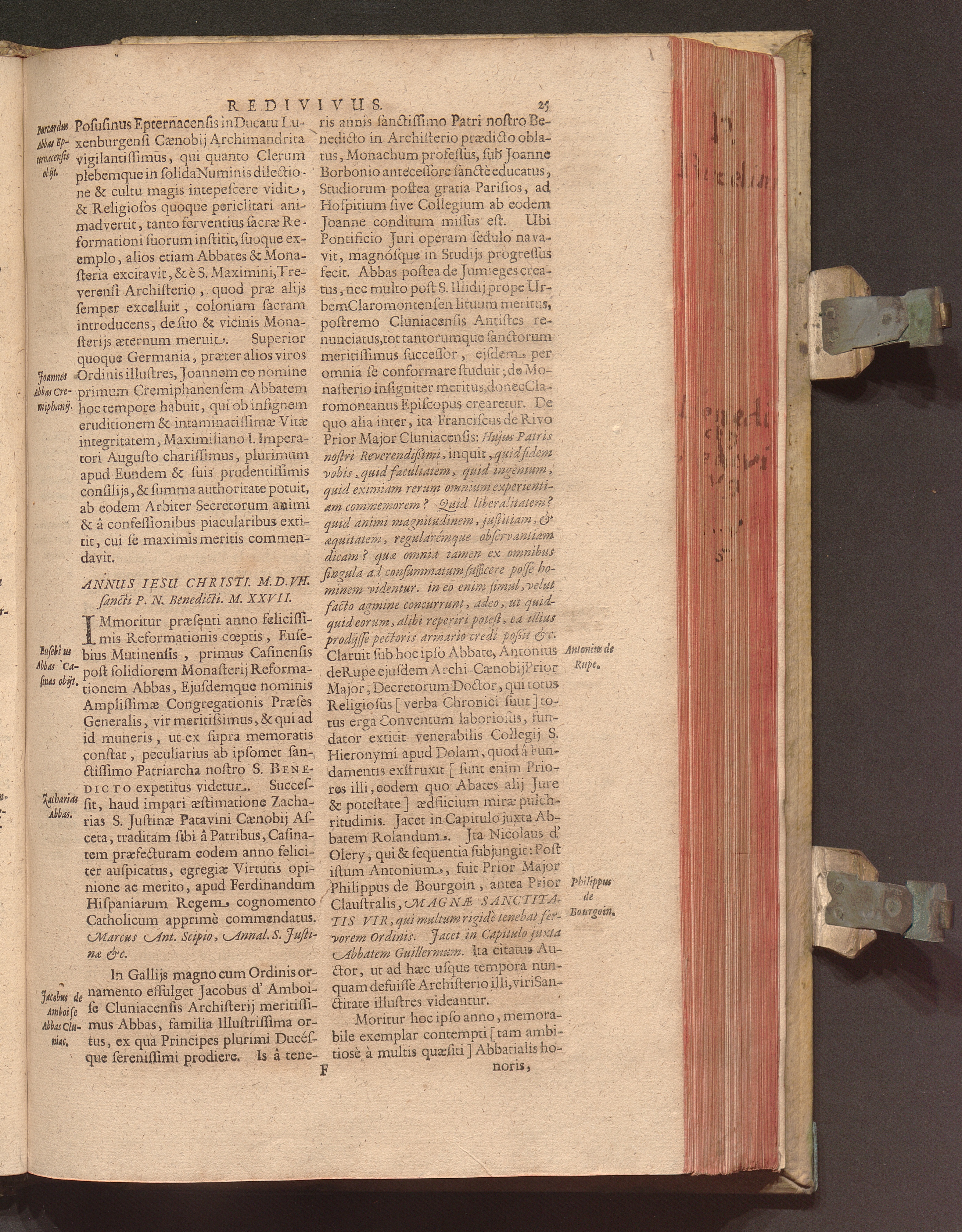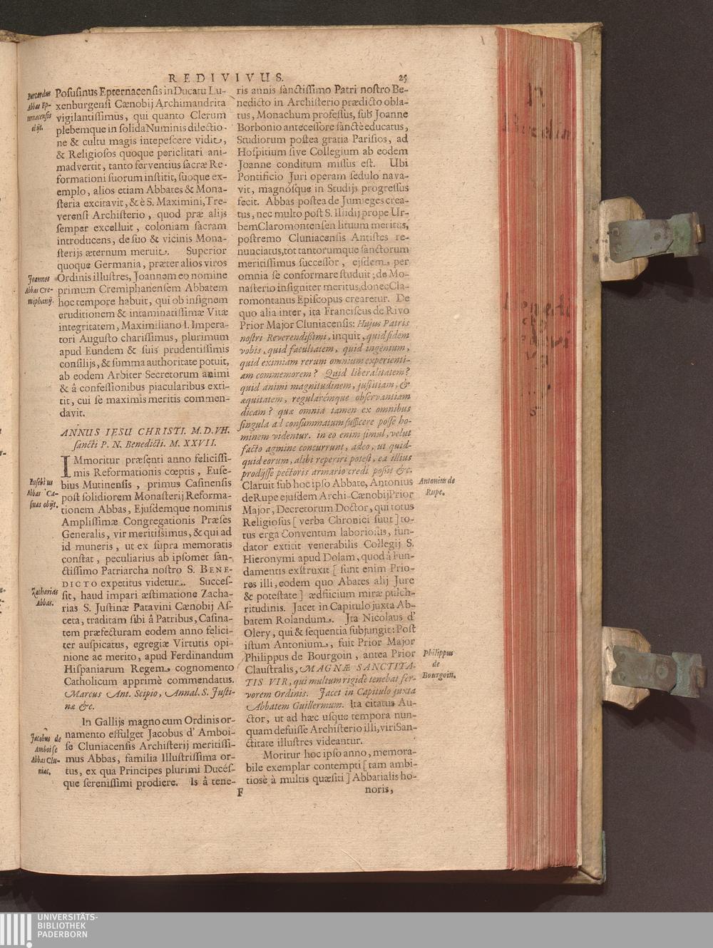 Benedictus Redivivus Hoc est: Benedictinj Ordinis Vetustißimi Amplißimique, Nostra, ac supera ætate Jmmarcescibilis Vigor, ac Viror : Anniversariâ Vernantiâ Chronologicè comprobatus, ac demonstratus Ab anno Christi M. D. Ad Præsentem Usque Ætatem, Et Annos Nostros, Jn Quo ... Operationes Jn Effusione Mirabili sui Spiritus ... quam compendiosissimè exhibe[n]tur / Opera, & Studio R. P. F. Gabrielis Bucelini Ascetæ Benedictini Imperialis Monasterij VVeingartensis Prioris S. Joannis Bapt. in Oppido Rhætiæ Superioris Veldkirchensi