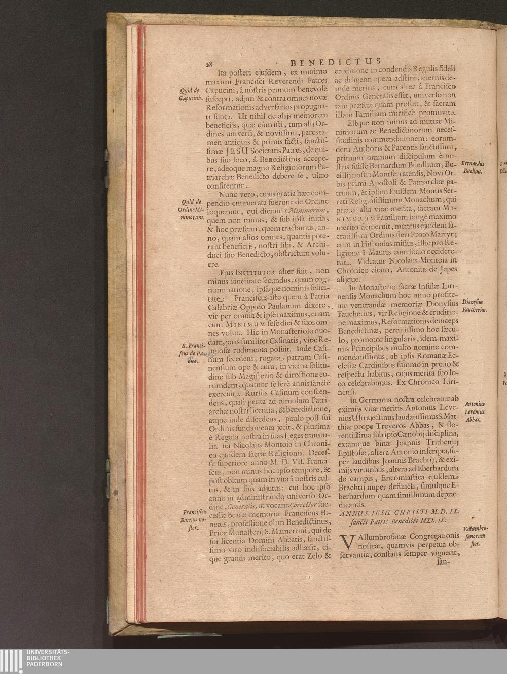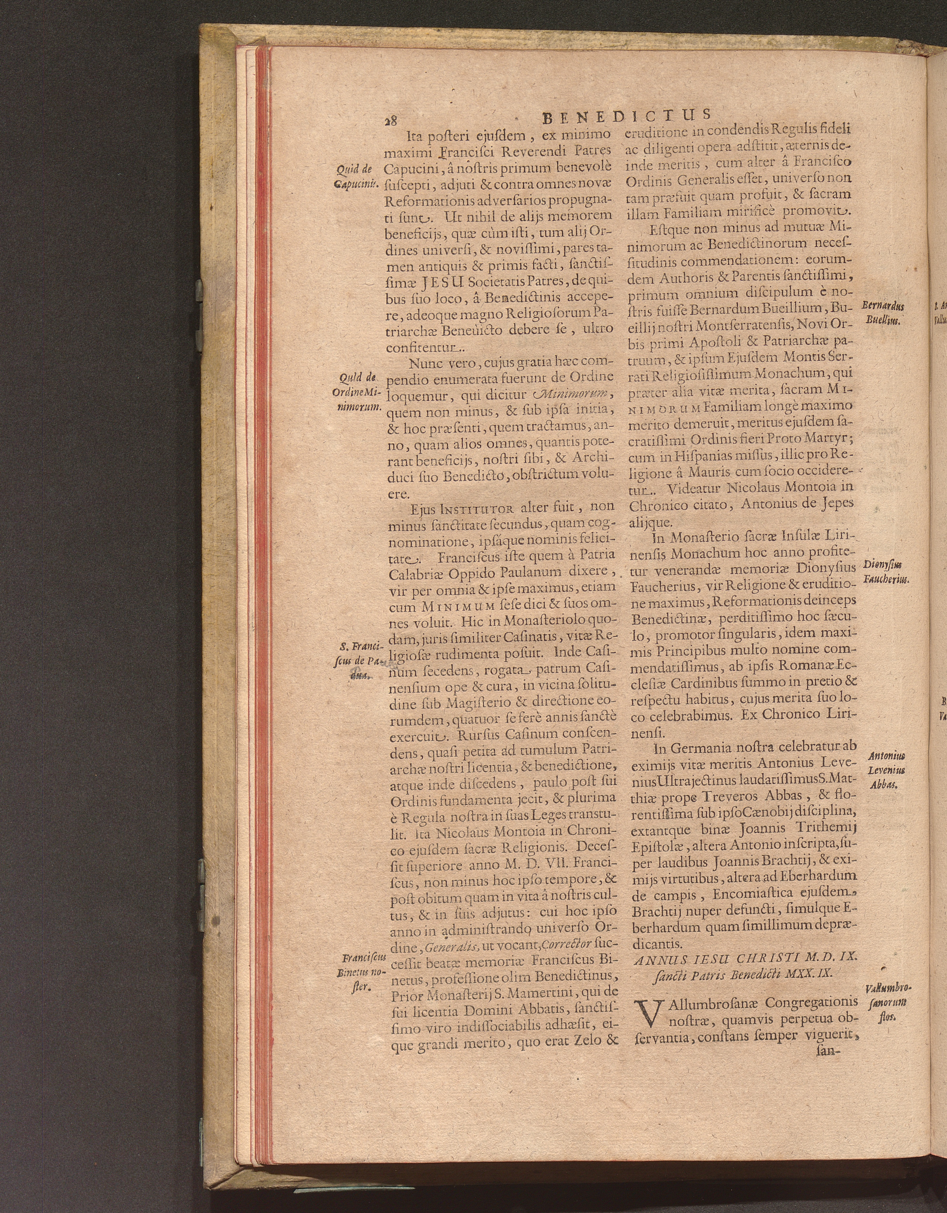 Benedictus Redivivus Hoc est: Benedictinj Ordinis Vetustißimi Amplißimique, Nostra, ac supera ætate Jmmarcescibilis Vigor, ac Viror : Anniversariâ Vernantiâ Chronologicè comprobatus, ac demonstratus Ab anno Christi M. D. Ad Præsentem Usque Ætatem, Et Annos Nostros, Jn Quo ... Operationes Jn Effusione Mirabili sui Spiritus ... quam compendiosissimè exhibe[n]tur / Opera, & Studio R. P. F. Gabrielis Bucelini Ascetæ Benedictini Imperialis Monasterij VVeingartensis Prioris S. Joannis Bapt. in Oppido Rhætiæ Superioris Veldkirchensi