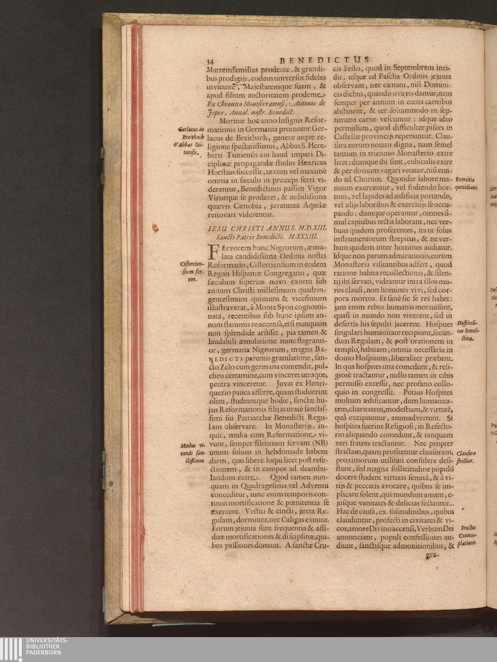 Benedictus Redivivus Hoc est: Benedictinj Ordinis Vetustißimi Amplißimique, Nostra, ac supera ætate Jmmarcescibilis Vigor, ac Viror : Anniversariâ Vernantiâ Chronologicè comprobatus, ac demonstratus Ab anno Christi M. D. Ad Præsentem Usque Ætatem, Et Annos Nostros, Jn Quo ... Operationes Jn Effusione Mirabili sui Spiritus ... quam compendiosissimè exhibe[n]tur / Opera, & Studio R. P. F. Gabrielis Bucelini Ascetæ Benedictini Imperialis Monasterij VVeingartensis Prioris S. Joannis Bapt. in Oppido Rhætiæ Superioris Veldkirchensi