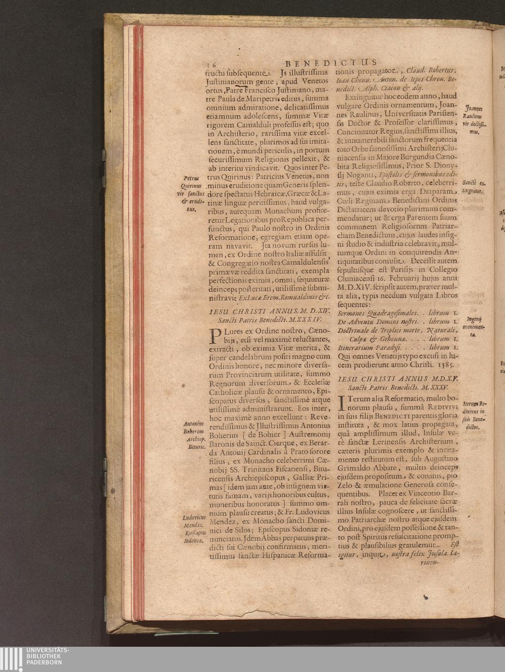 Benedictus Redivivus Hoc est: Benedictinj Ordinis Vetustißimi Amplißimique, Nostra, ac supera ætate Jmmarcescibilis Vigor, ac Viror : Anniversariâ Vernantiâ Chronologicè comprobatus, ac demonstratus Ab anno Christi M. D. Ad Præsentem Usque Ætatem, Et Annos Nostros, Jn Quo ... Operationes Jn Effusione Mirabili sui Spiritus ... quam compendiosissimè exhibe[n]tur / Opera, & Studio R. P. F. Gabrielis Bucelini Ascetæ Benedictini Imperialis Monasterij VVeingartensis Prioris S. Joannis Bapt. in Oppido Rhætiæ Superioris Veldkirchensi