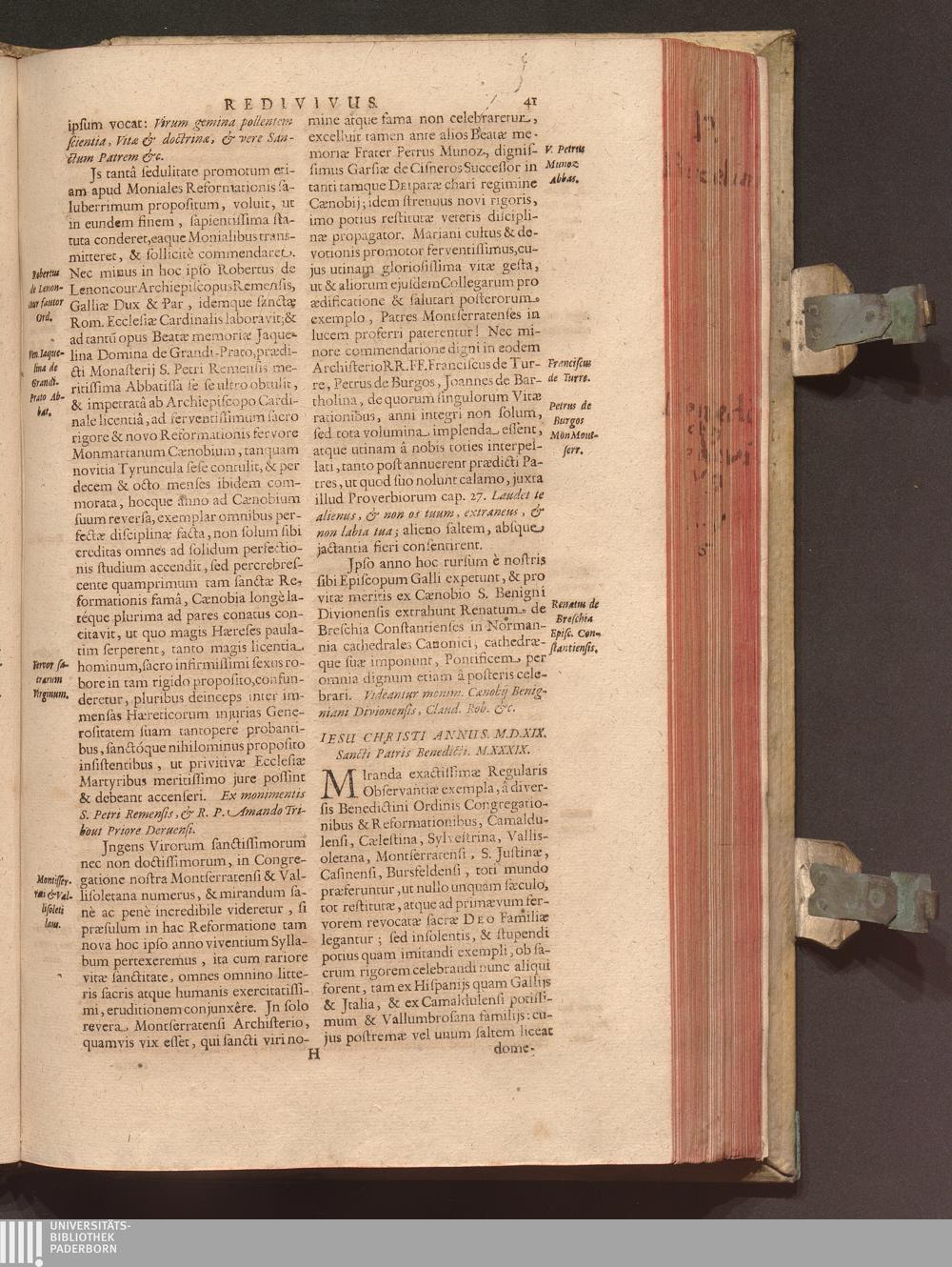 Benedictus Redivivus Hoc est: Benedictinj Ordinis Vetustißimi Amplißimique, Nostra, ac supera ætate Jmmarcescibilis Vigor, ac Viror : Anniversariâ Vernantiâ Chronologicè comprobatus, ac demonstratus Ab anno Christi M. D. Ad Præsentem Usque Ætatem, Et Annos Nostros, Jn Quo ... Operationes Jn Effusione Mirabili sui Spiritus ... quam compendiosissimè exhibe[n]tur / Opera, & Studio R. P. F. Gabrielis Bucelini Ascetæ Benedictini Imperialis Monasterij VVeingartensis Prioris S. Joannis Bapt. in Oppido Rhætiæ Superioris Veldkirchensi