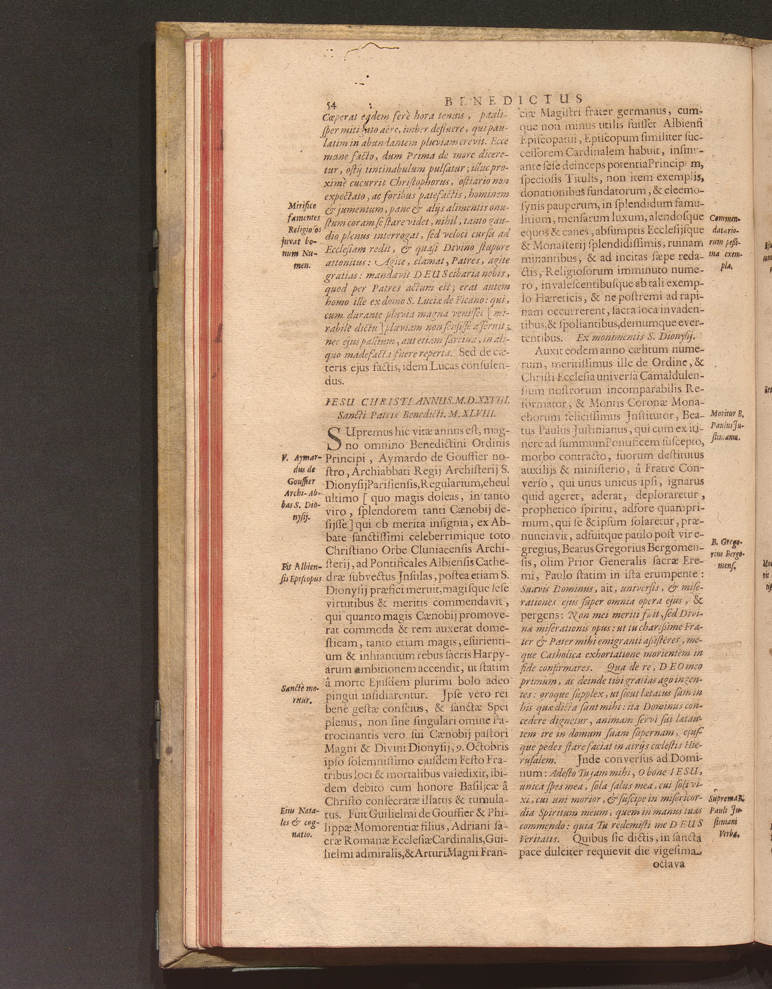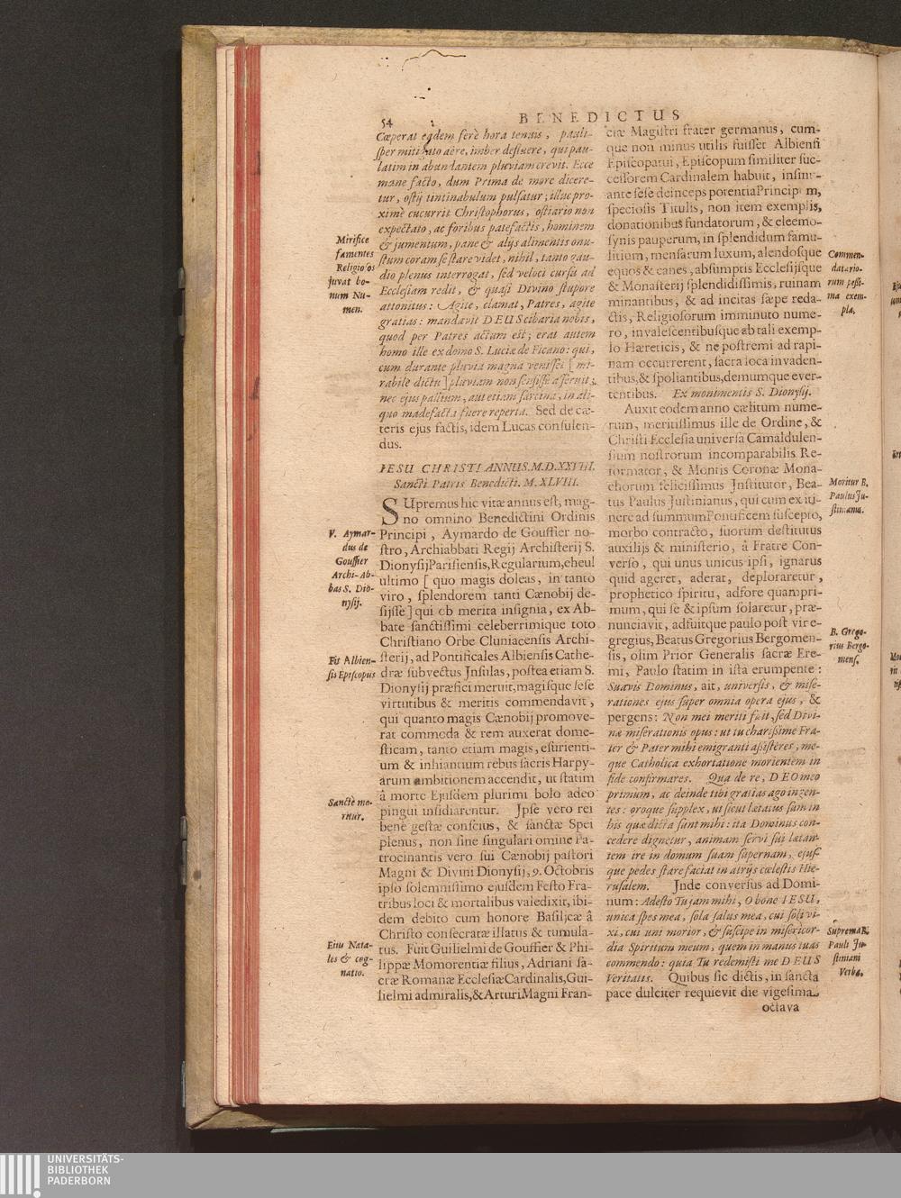 Benedictus Redivivus Hoc est: Benedictinj Ordinis Vetustißimi Amplißimique, Nostra, ac supera ætate Jmmarcescibilis Vigor, ac Viror : Anniversariâ Vernantiâ Chronologicè comprobatus, ac demonstratus Ab anno Christi M. D. Ad Præsentem Usque Ætatem, Et Annos Nostros, Jn Quo ... Operationes Jn Effusione Mirabili sui Spiritus ... quam compendiosissimè exhibe[n]tur / Opera, & Studio R. P. F. Gabrielis Bucelini Ascetæ Benedictini Imperialis Monasterij VVeingartensis Prioris S. Joannis Bapt. in Oppido Rhætiæ Superioris Veldkirchensi