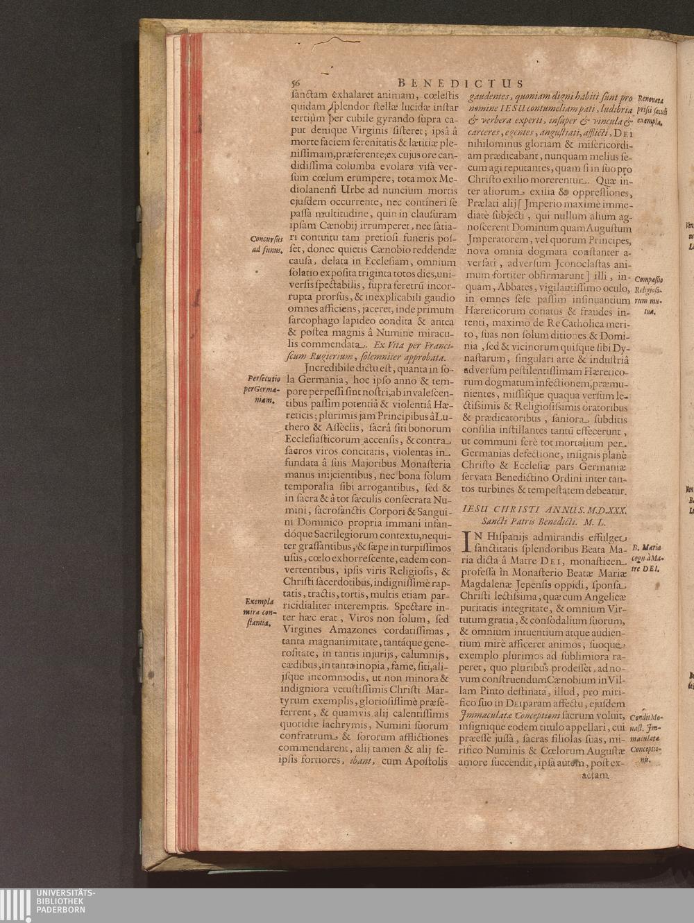 Benedictus Redivivus Hoc est: Benedictinj Ordinis Vetustißimi Amplißimique, Nostra, ac supera ætate Jmmarcescibilis Vigor, ac Viror : Anniversariâ Vernantiâ Chronologicè comprobatus, ac demonstratus Ab anno Christi M. D. Ad Præsentem Usque Ætatem, Et Annos Nostros, Jn Quo ... Operationes Jn Effusione Mirabili sui Spiritus ... quam compendiosissimè exhibe[n]tur / Opera, & Studio R. P. F. Gabrielis Bucelini Ascetæ Benedictini Imperialis Monasterij VVeingartensis Prioris S. Joannis Bapt. in Oppido Rhætiæ Superioris Veldkirchensi
