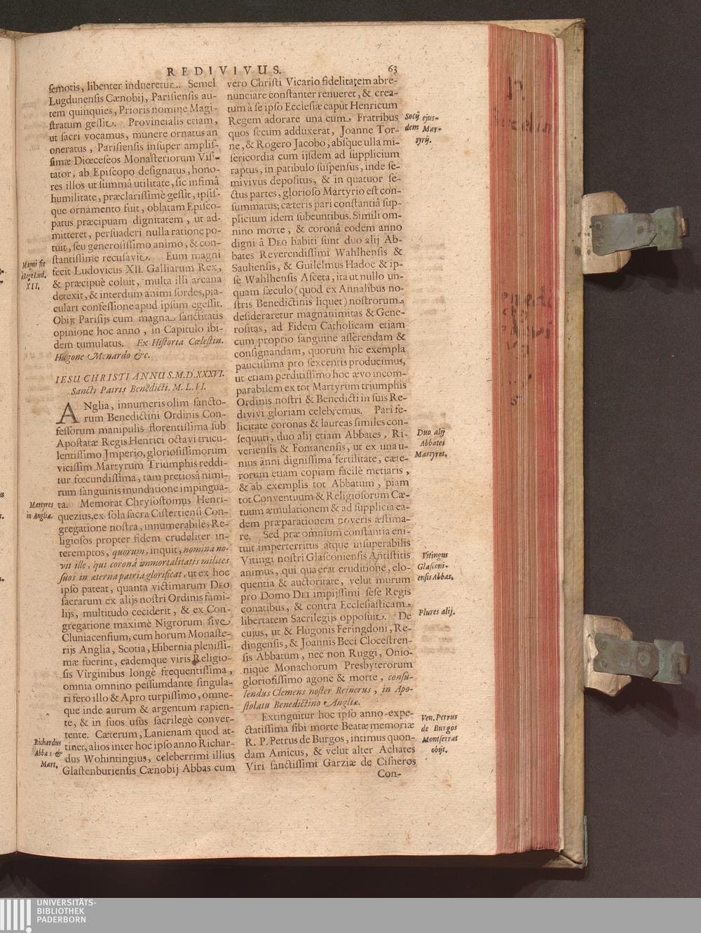 Benedictus Redivivus Hoc est: Benedictinj Ordinis Vetustißimi Amplißimique, Nostra, ac supera ætate Jmmarcescibilis Vigor, ac Viror : Anniversariâ Vernantiâ Chronologicè comprobatus, ac demonstratus Ab anno Christi M. D. Ad Præsentem Usque Ætatem, Et Annos Nostros, Jn Quo ... Operationes Jn Effusione Mirabili sui Spiritus ... quam compendiosissimè exhibe[n]tur / Opera, & Studio R. P. F. Gabrielis Bucelini Ascetæ Benedictini Imperialis Monasterij VVeingartensis Prioris S. Joannis Bapt. in Oppido Rhætiæ Superioris Veldkirchensi
