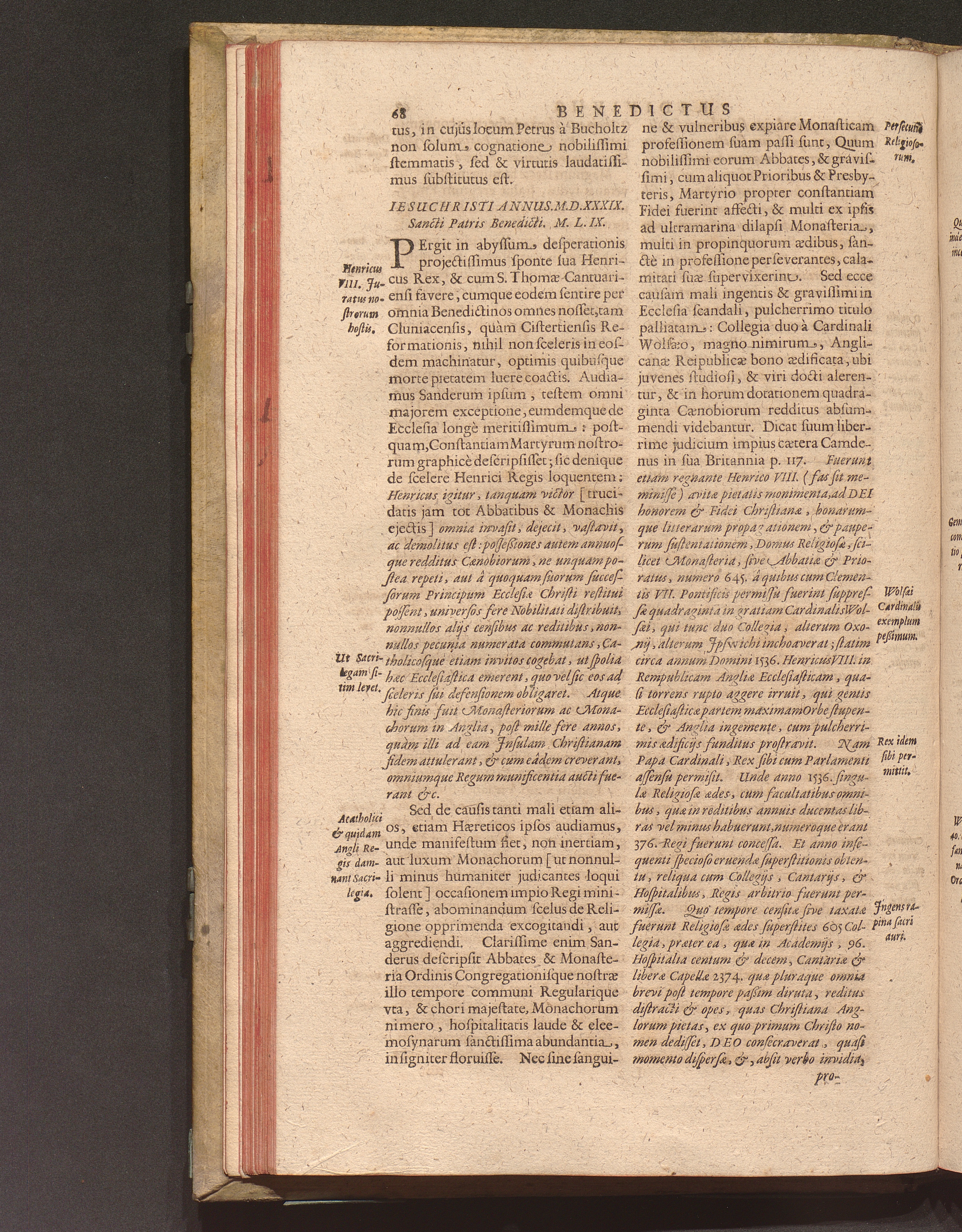 Benedictus Redivivus Hoc est: Benedictinj Ordinis Vetustißimi Amplißimique, Nostra, ac supera ætate Jmmarcescibilis Vigor, ac Viror : Anniversariâ Vernantiâ Chronologicè comprobatus, ac demonstratus Ab anno Christi M. D. Ad Præsentem Usque Ætatem, Et Annos Nostros, Jn Quo ... Operationes Jn Effusione Mirabili sui Spiritus ... quam compendiosissimè exhibe[n]tur / Opera, & Studio R. P. F. Gabrielis Bucelini Ascetæ Benedictini Imperialis Monasterij VVeingartensis Prioris S. Joannis Bapt. in Oppido Rhætiæ Superioris Veldkirchensi