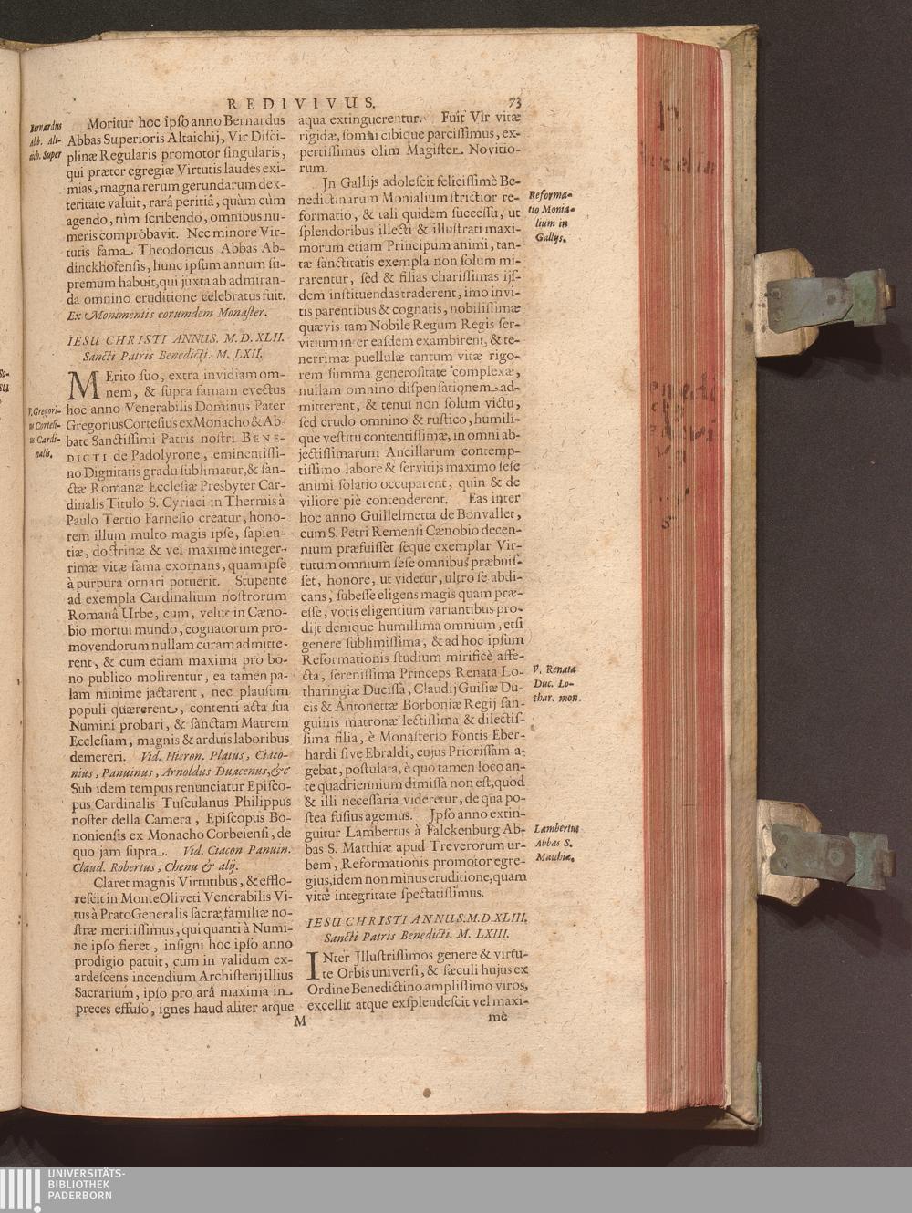 Benedictus Redivivus Hoc est: Benedictinj Ordinis Vetustißimi Amplißimique, Nostra, ac supera ætate Jmmarcescibilis Vigor, ac Viror : Anniversariâ Vernantiâ Chronologicè comprobatus, ac demonstratus Ab anno Christi M. D. Ad Præsentem Usque Ætatem, Et Annos Nostros, Jn Quo ... Operationes Jn Effusione Mirabili sui Spiritus ... quam compendiosissimè exhibe[n]tur / Opera, & Studio R. P. F. Gabrielis Bucelini Ascetæ Benedictini Imperialis Monasterij VVeingartensis Prioris S. Joannis Bapt. in Oppido Rhætiæ Superioris Veldkirchensi