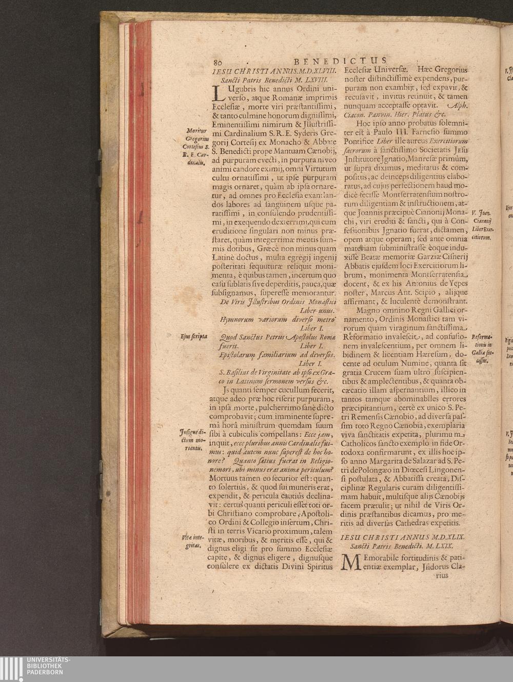 Benedictus Redivivus Hoc est: Benedictinj Ordinis Vetustißimi Amplißimique, Nostra, ac supera ætate Jmmarcescibilis Vigor, ac Viror : Anniversariâ Vernantiâ Chronologicè comprobatus, ac demonstratus Ab anno Christi M. D. Ad Præsentem Usque Ætatem, Et Annos Nostros, Jn Quo ... Operationes Jn Effusione Mirabili sui Spiritus ... quam compendiosissimè exhibe[n]tur / Opera, & Studio R. P. F. Gabrielis Bucelini Ascetæ Benedictini Imperialis Monasterij VVeingartensis Prioris S. Joannis Bapt. in Oppido Rhætiæ Superioris Veldkirchensi