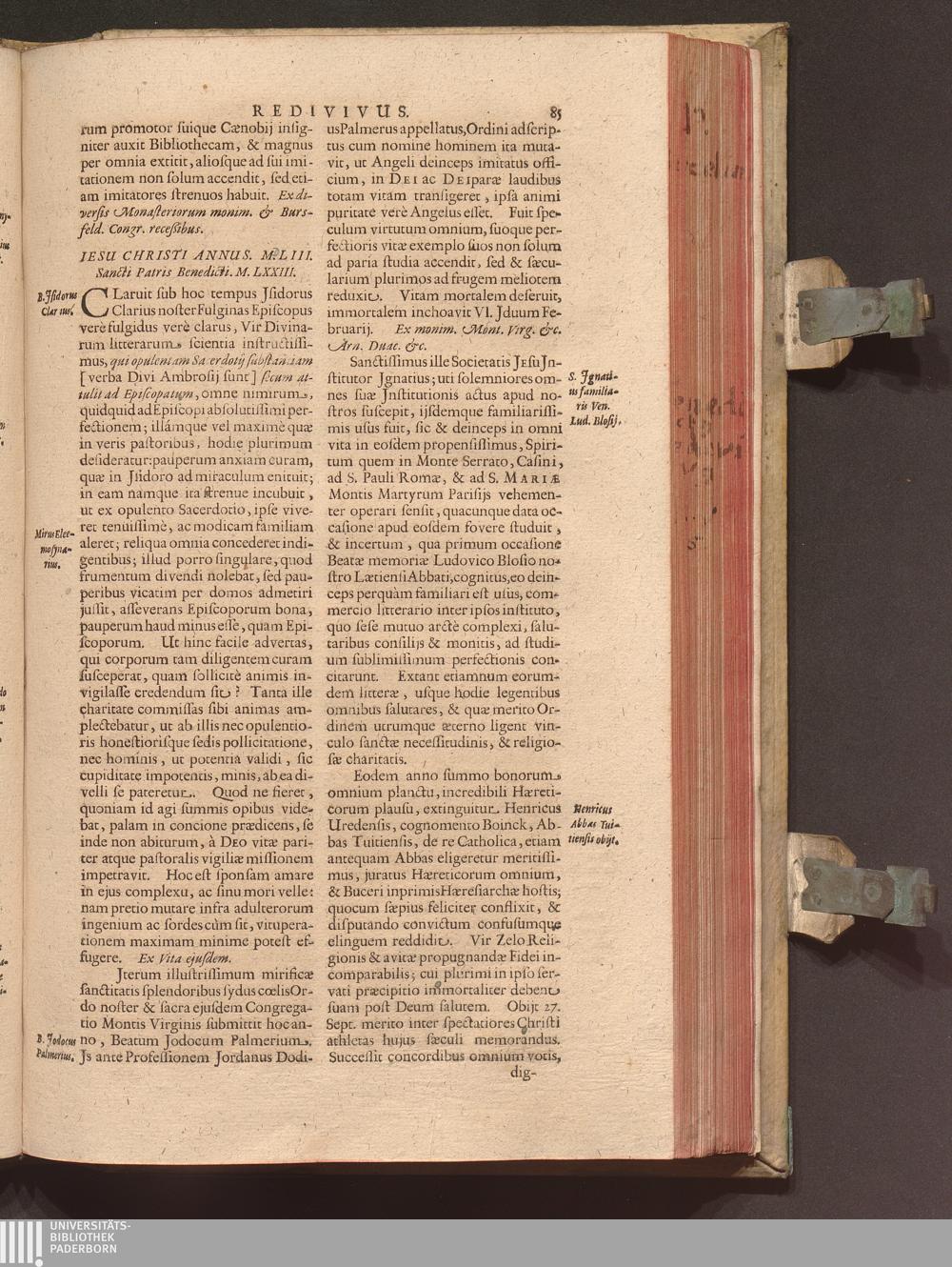 Benedictus Redivivus Hoc est: Benedictinj Ordinis Vetustißimi Amplißimique, Nostra, ac supera ætate Jmmarcescibilis Vigor, ac Viror : Anniversariâ Vernantiâ Chronologicè comprobatus, ac demonstratus Ab anno Christi M. D. Ad Præsentem Usque Ætatem, Et Annos Nostros, Jn Quo ... Operationes Jn Effusione Mirabili sui Spiritus ... quam compendiosissimè exhibe[n]tur / Opera, & Studio R. P. F. Gabrielis Bucelini Ascetæ Benedictini Imperialis Monasterij VVeingartensis Prioris S. Joannis Bapt. in Oppido Rhætiæ Superioris Veldkirchensi