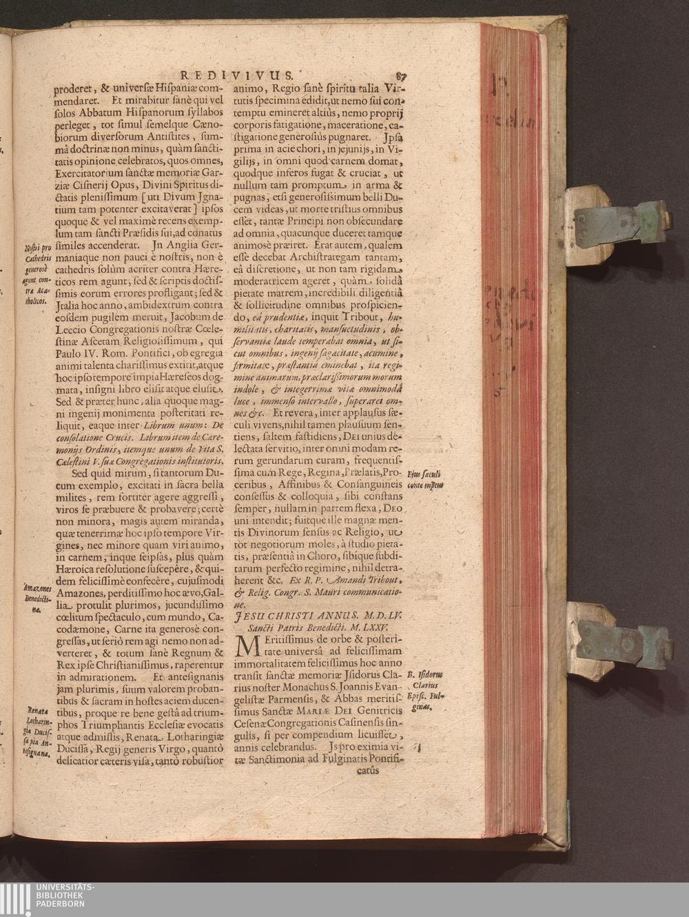 Benedictus Redivivus Hoc est: Benedictinj Ordinis Vetustißimi Amplißimique, Nostra, ac supera ætate Jmmarcescibilis Vigor, ac Viror : Anniversariâ Vernantiâ Chronologicè comprobatus, ac demonstratus Ab anno Christi M. D. Ad Præsentem Usque Ætatem, Et Annos Nostros, Jn Quo ... Operationes Jn Effusione Mirabili sui Spiritus ... quam compendiosissimè exhibe[n]tur / Opera, & Studio R. P. F. Gabrielis Bucelini Ascetæ Benedictini Imperialis Monasterij VVeingartensis Prioris S. Joannis Bapt. in Oppido Rhætiæ Superioris Veldkirchensi