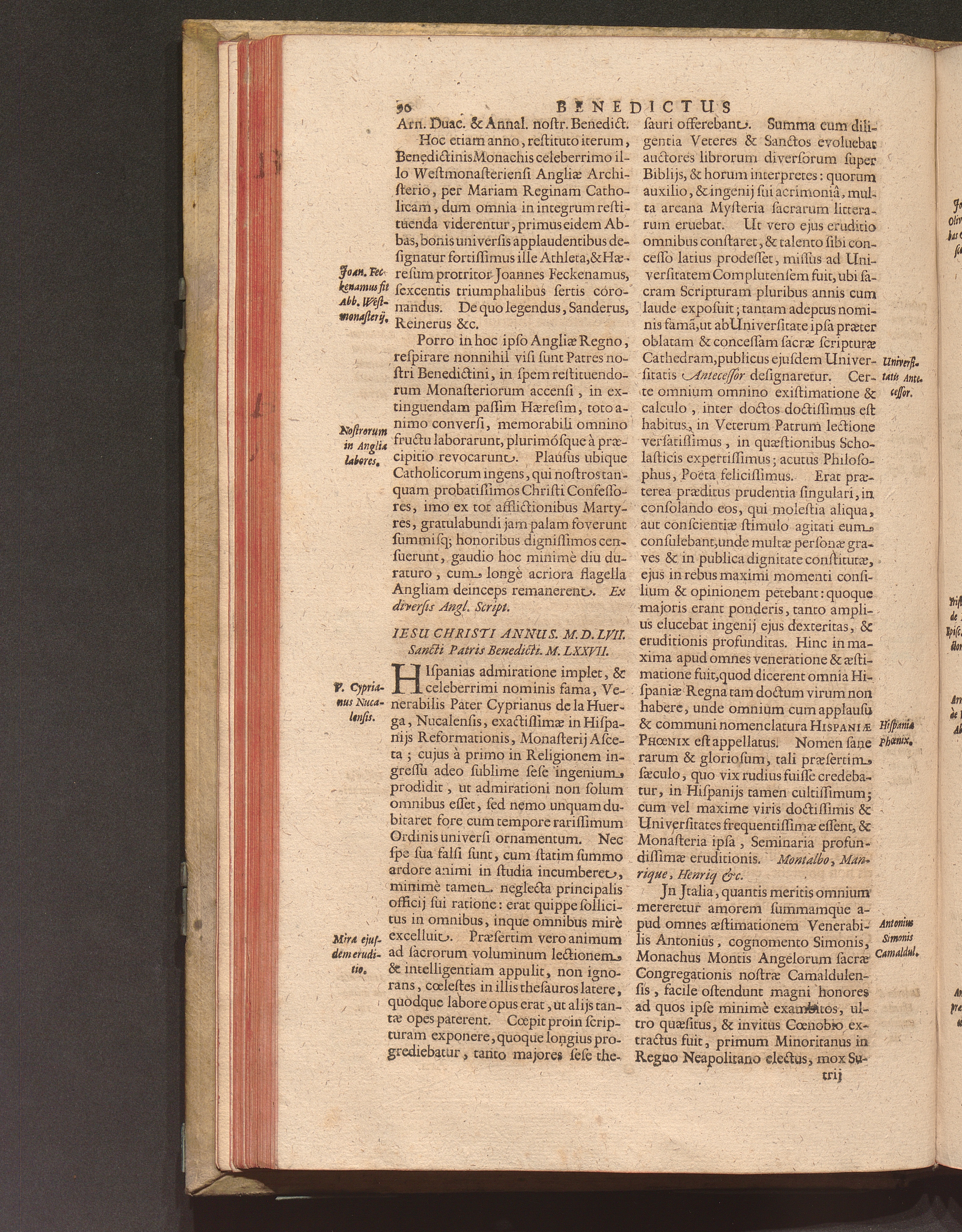 Benedictus Redivivus Hoc est: Benedictinj Ordinis Vetustißimi Amplißimique, Nostra, ac supera ætate Jmmarcescibilis Vigor, ac Viror : Anniversariâ Vernantiâ Chronologicè comprobatus, ac demonstratus Ab anno Christi M. D. Ad Præsentem Usque Ætatem, Et Annos Nostros, Jn Quo ... Operationes Jn Effusione Mirabili sui Spiritus ... quam compendiosissimè exhibe[n]tur / Opera, & Studio R. P. F. Gabrielis Bucelini Ascetæ Benedictini Imperialis Monasterij VVeingartensis Prioris S. Joannis Bapt. in Oppido Rhætiæ Superioris Veldkirchensi