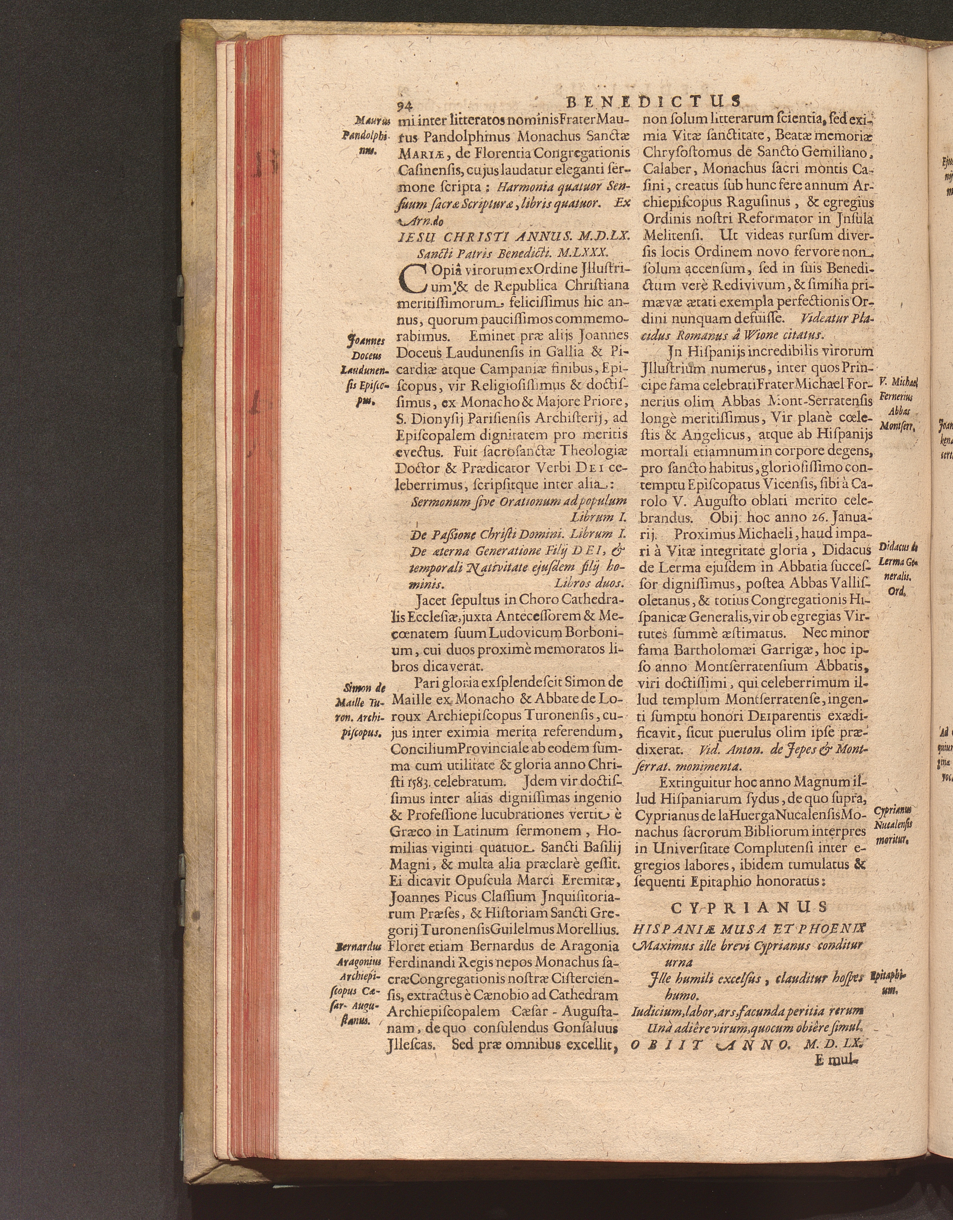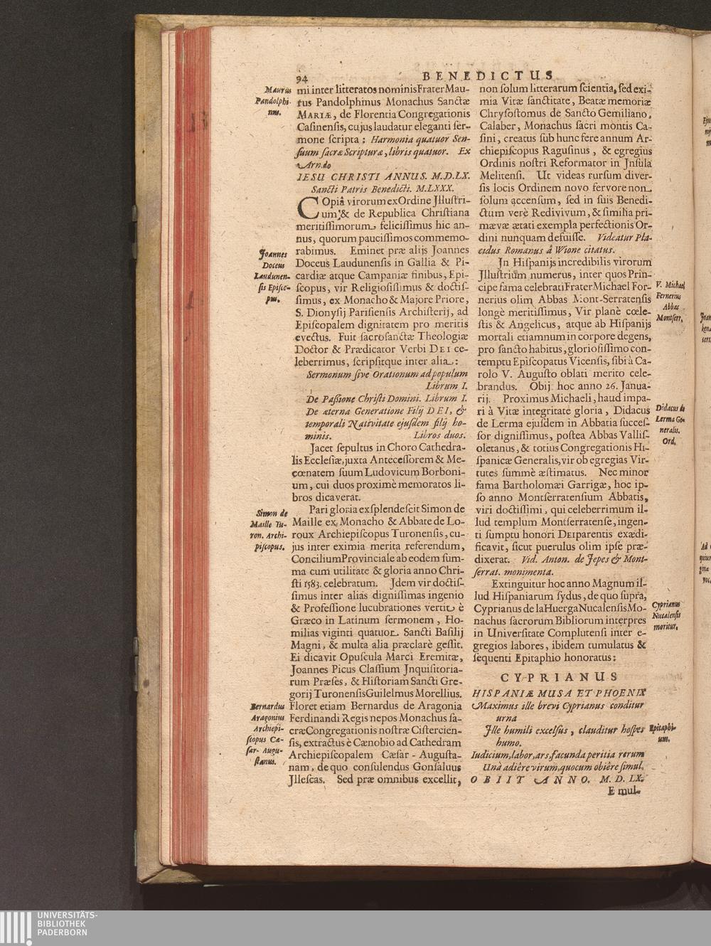 Benedictus Redivivus Hoc est: Benedictinj Ordinis Vetustißimi Amplißimique, Nostra, ac supera ætate Jmmarcescibilis Vigor, ac Viror : Anniversariâ Vernantiâ Chronologicè comprobatus, ac demonstratus Ab anno Christi M. D. Ad Præsentem Usque Ætatem, Et Annos Nostros, Jn Quo ... Operationes Jn Effusione Mirabili sui Spiritus ... quam compendiosissimè exhibe[n]tur / Opera, & Studio R. P. F. Gabrielis Bucelini Ascetæ Benedictini Imperialis Monasterij VVeingartensis Prioris S. Joannis Bapt. in Oppido Rhætiæ Superioris Veldkirchensi