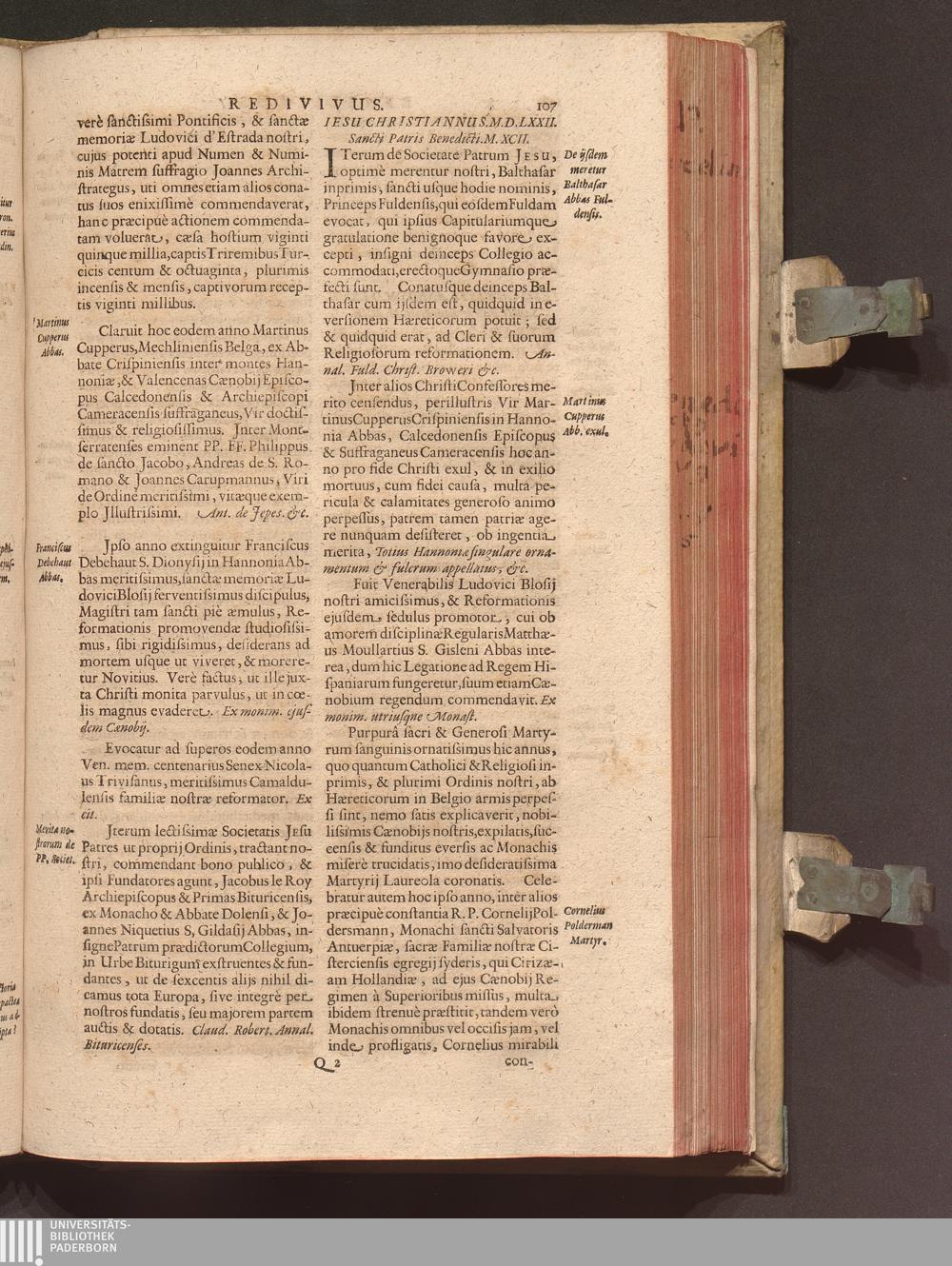 Benedictus Redivivus Hoc est: Benedictinj Ordinis Vetustißimi Amplißimique, Nostra, ac supera ætate Jmmarcescibilis Vigor, ac Viror : Anniversariâ Vernantiâ Chronologicè comprobatus, ac demonstratus Ab anno Christi M. D. Ad Præsentem Usque Ætatem, Et Annos Nostros, Jn Quo ... Operationes Jn Effusione Mirabili sui Spiritus ... quam compendiosissimè exhibe[n]tur / Opera, & Studio R. P. F. Gabrielis Bucelini Ascetæ Benedictini Imperialis Monasterij VVeingartensis Prioris S. Joannis Bapt. in Oppido Rhætiæ Superioris Veldkirchensi
