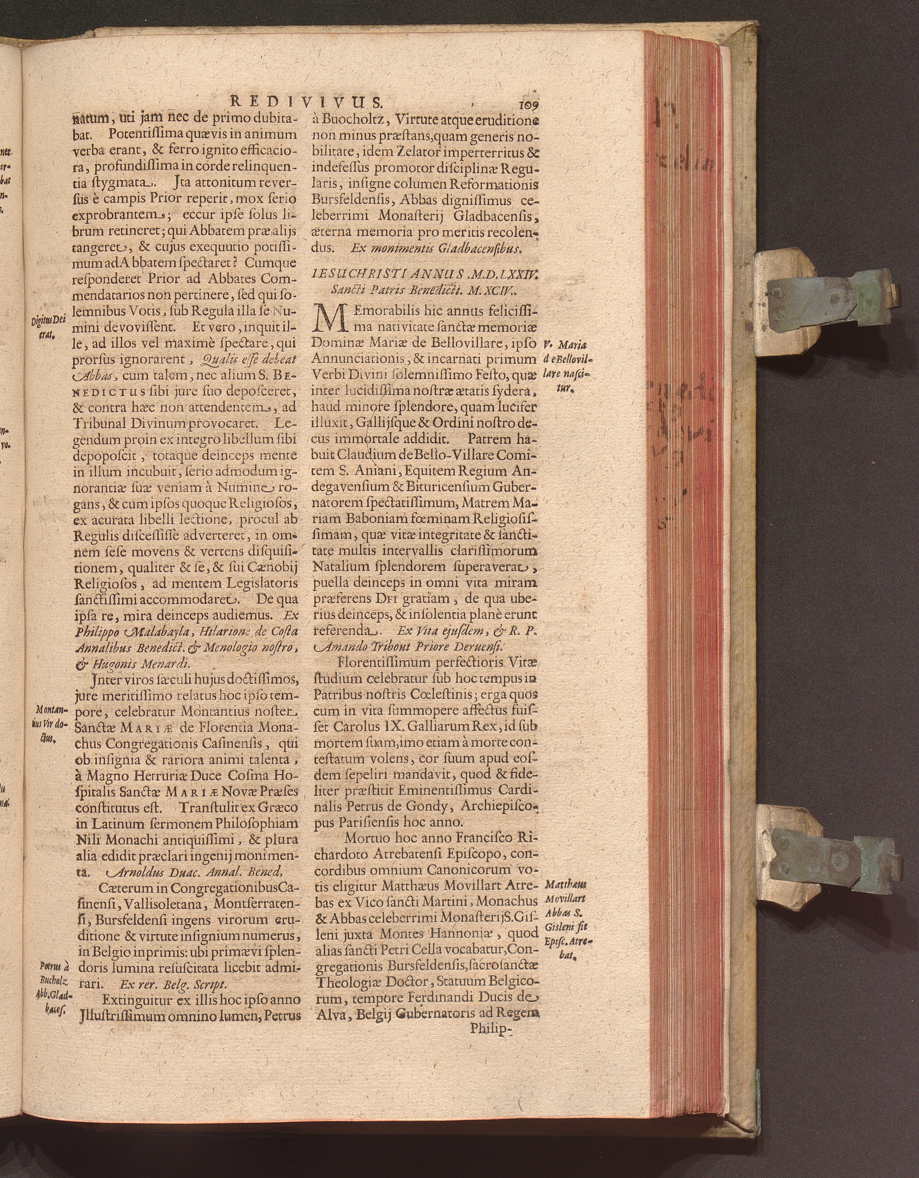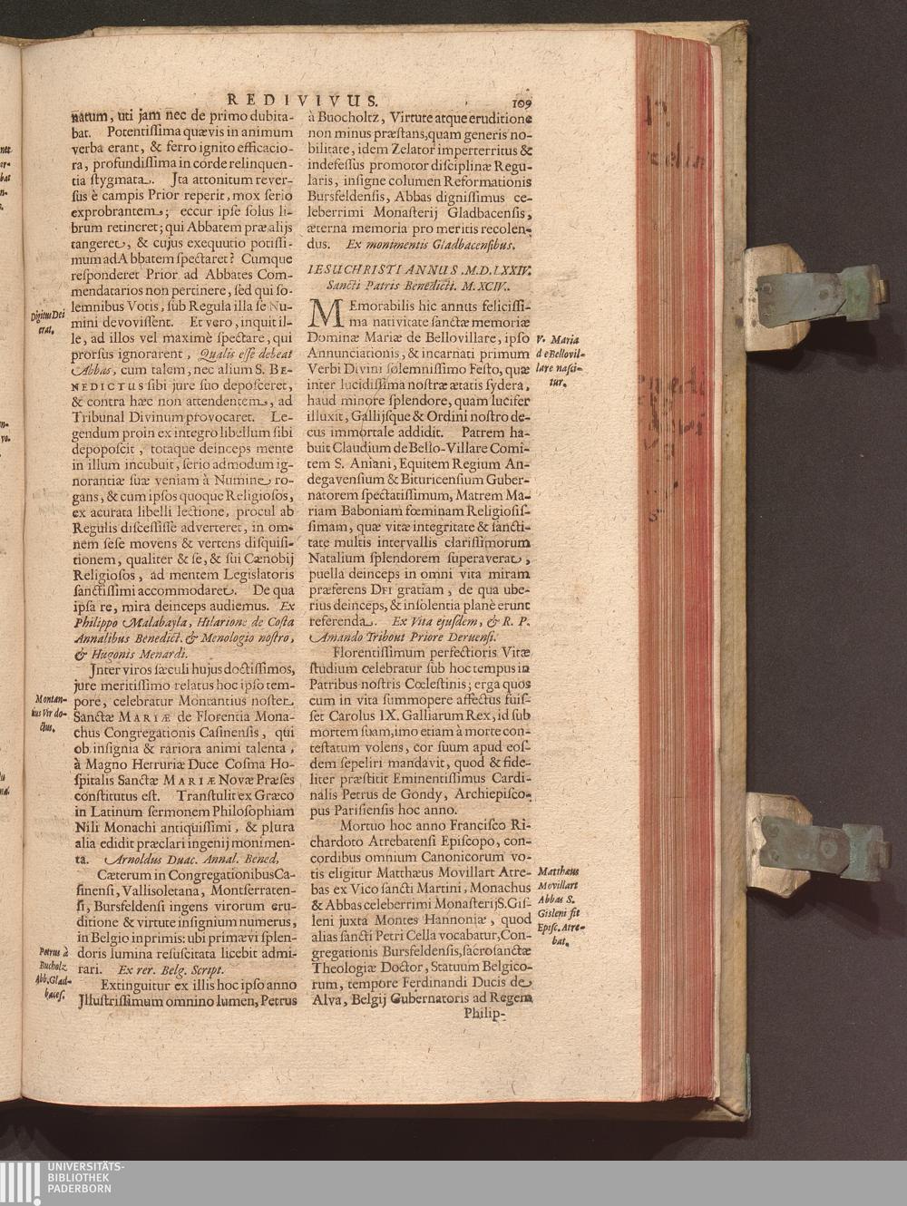 Benedictus Redivivus Hoc est: Benedictinj Ordinis Vetustißimi Amplißimique, Nostra, ac supera ætate Jmmarcescibilis Vigor, ac Viror : Anniversariâ Vernantiâ Chronologicè comprobatus, ac demonstratus Ab anno Christi M. D. Ad Præsentem Usque Ætatem, Et Annos Nostros, Jn Quo ... Operationes Jn Effusione Mirabili sui Spiritus ... quam compendiosissimè exhibe[n]tur / Opera, & Studio R. P. F. Gabrielis Bucelini Ascetæ Benedictini Imperialis Monasterij VVeingartensis Prioris S. Joannis Bapt. in Oppido Rhætiæ Superioris Veldkirchensi
