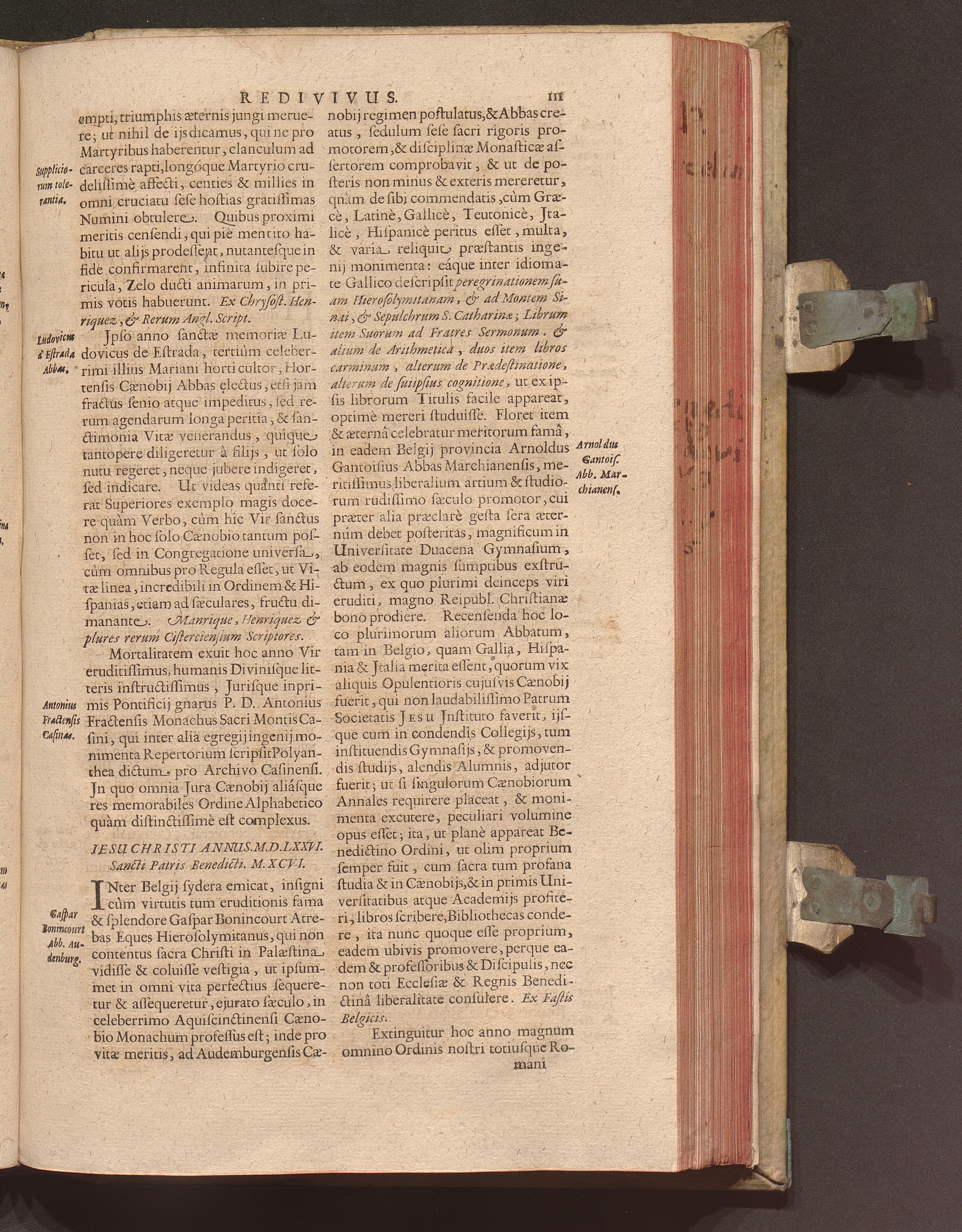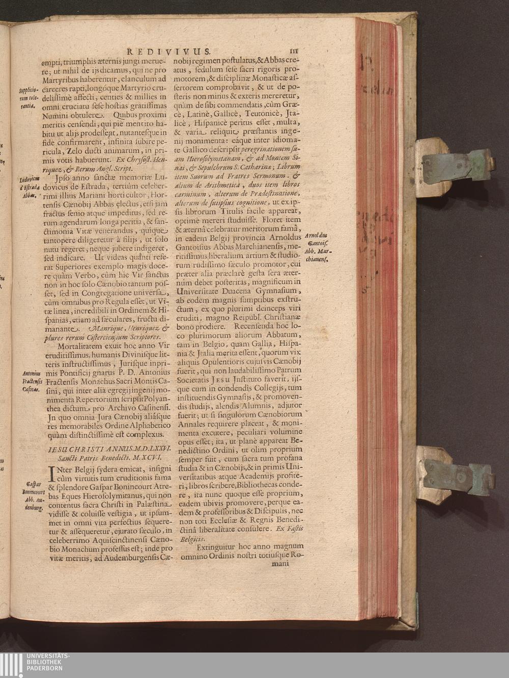 Benedictus Redivivus Hoc est: Benedictinj Ordinis Vetustißimi Amplißimique, Nostra, ac supera ætate Jmmarcescibilis Vigor, ac Viror : Anniversariâ Vernantiâ Chronologicè comprobatus, ac demonstratus Ab anno Christi M. D. Ad Præsentem Usque Ætatem, Et Annos Nostros, Jn Quo ... Operationes Jn Effusione Mirabili sui Spiritus ... quam compendiosissimè exhibe[n]tur / Opera, & Studio R. P. F. Gabrielis Bucelini Ascetæ Benedictini Imperialis Monasterij VVeingartensis Prioris S. Joannis Bapt. in Oppido Rhætiæ Superioris Veldkirchensi
