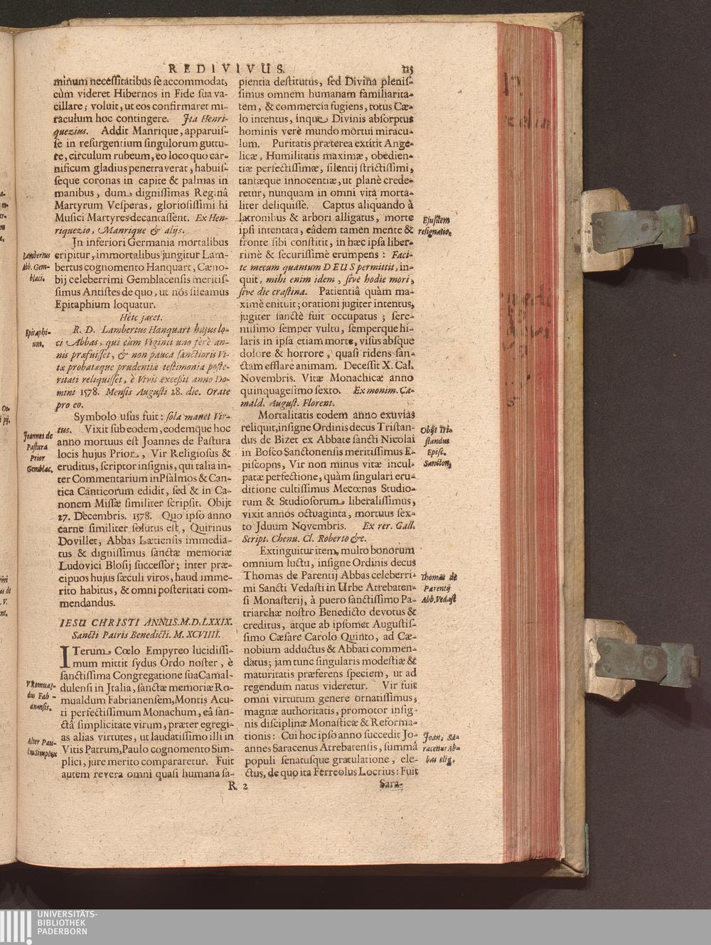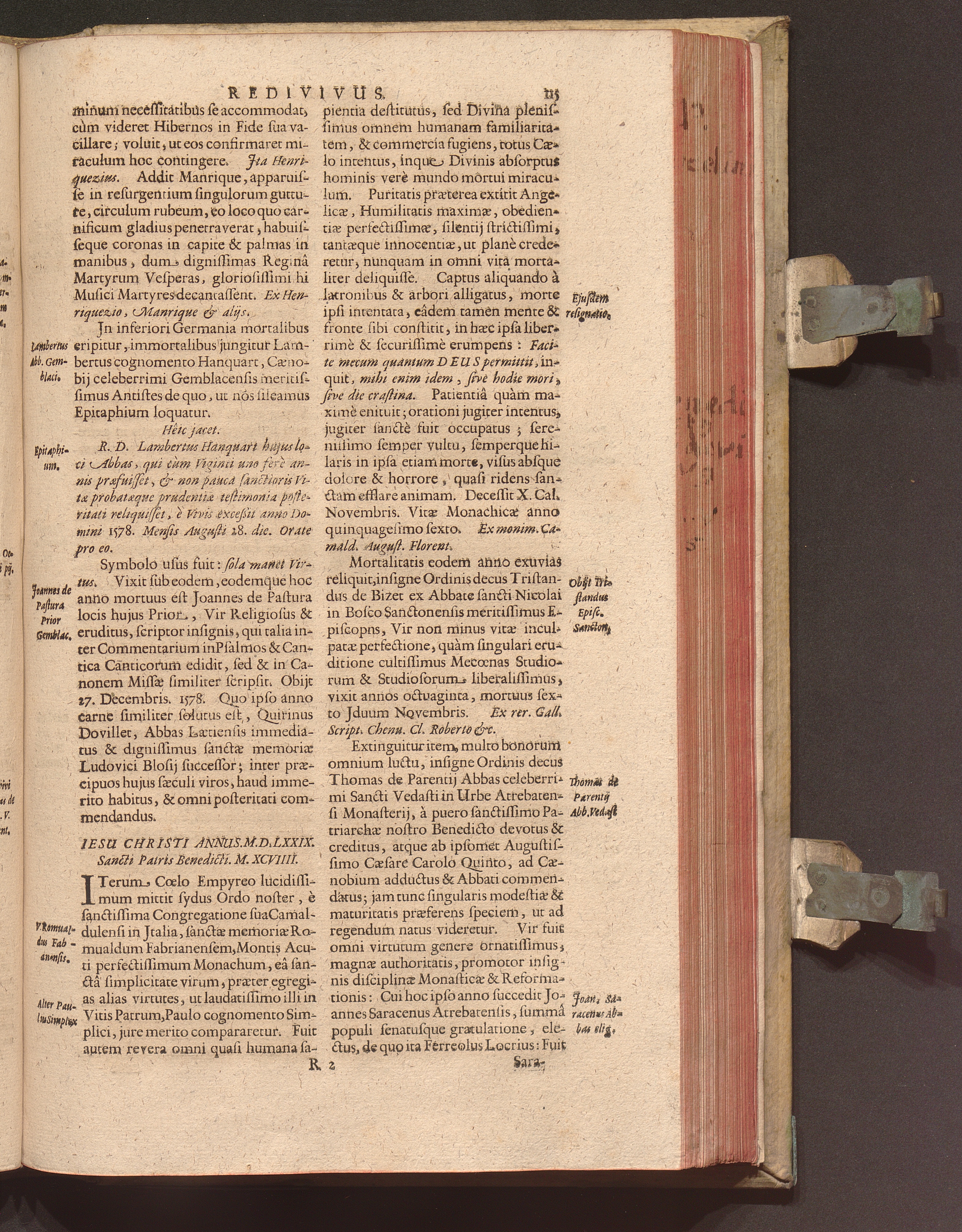 Benedictus Redivivus Hoc est: Benedictinj Ordinis Vetustißimi Amplißimique, Nostra, ac supera ætate Jmmarcescibilis Vigor, ac Viror : Anniversariâ Vernantiâ Chronologicè comprobatus, ac demonstratus Ab anno Christi M. D. Ad Præsentem Usque Ætatem, Et Annos Nostros, Jn Quo ... Operationes Jn Effusione Mirabili sui Spiritus ... quam compendiosissimè exhibe[n]tur / Opera, & Studio R. P. F. Gabrielis Bucelini Ascetæ Benedictini Imperialis Monasterij VVeingartensis Prioris S. Joannis Bapt. in Oppido Rhætiæ Superioris Veldkirchensi