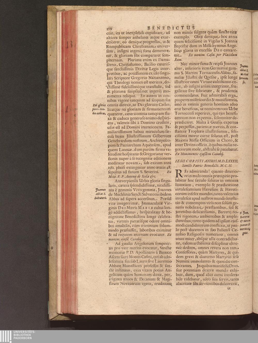 Benedictus Redivivus Hoc est: Benedictinj Ordinis Vetustißimi Amplißimique, Nostra, ac supera ætate Jmmarcescibilis Vigor, ac Viror : Anniversariâ Vernantiâ Chronologicè comprobatus, ac demonstratus Ab anno Christi M. D. Ad Præsentem Usque Ætatem, Et Annos Nostros, Jn Quo ... Operationes Jn Effusione Mirabili sui Spiritus ... quam compendiosissimè exhibe[n]tur / Opera, & Studio R. P. F. Gabrielis Bucelini Ascetæ Benedictini Imperialis Monasterij VVeingartensis Prioris S. Joannis Bapt. in Oppido Rhætiæ Superioris Veldkirchensi
