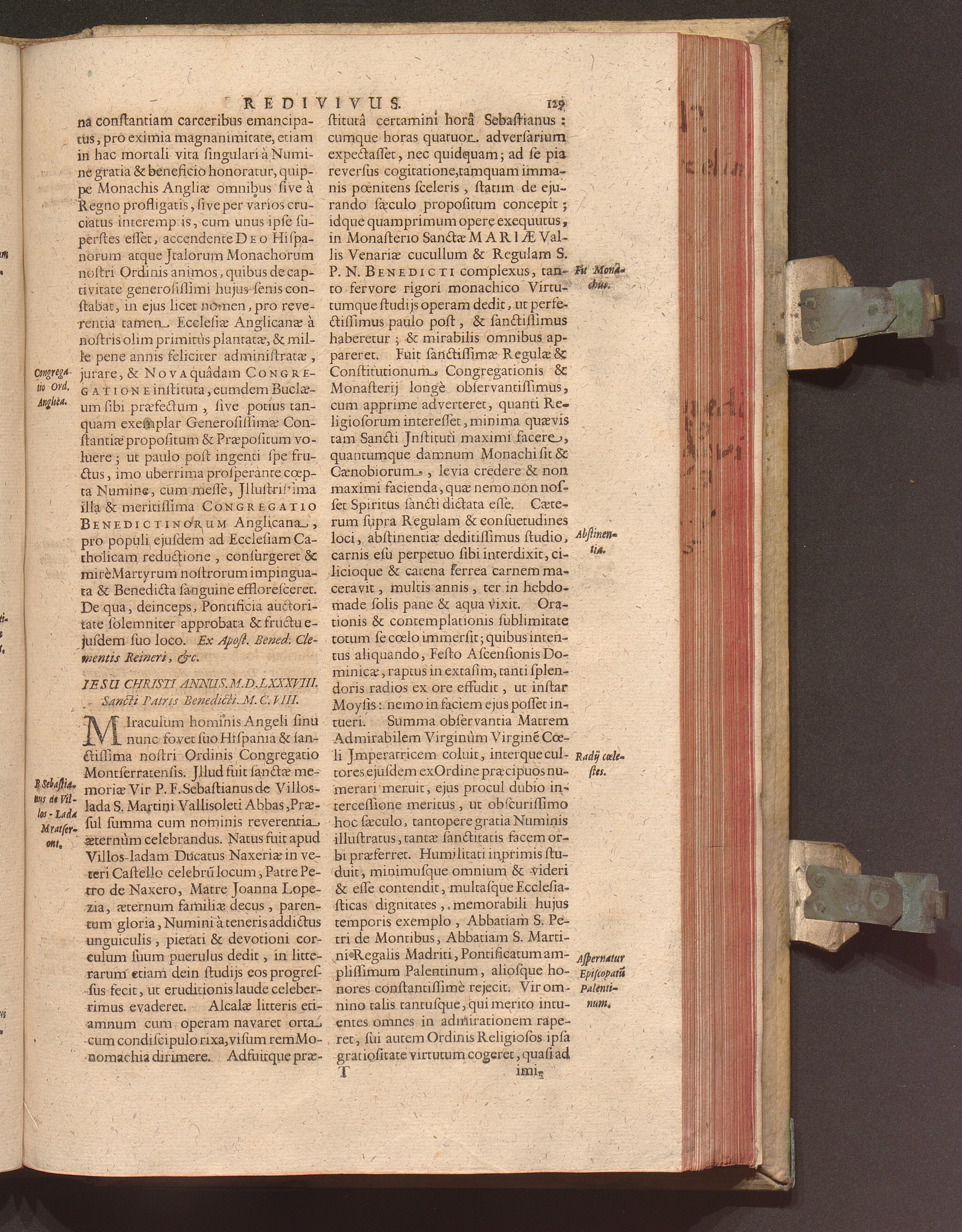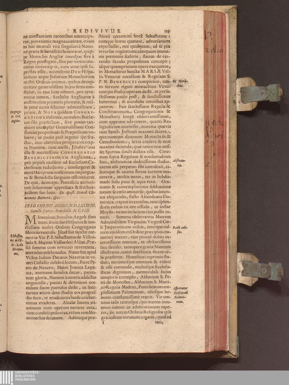 Benedictus Redivivus Hoc est: Benedictinj Ordinis Vetustißimi Amplißimique, Nostra, ac supera ætate Jmmarcescibilis Vigor, ac Viror : Anniversariâ Vernantiâ Chronologicè comprobatus, ac demonstratus Ab anno Christi M. D. Ad Præsentem Usque Ætatem, Et Annos Nostros, Jn Quo ... Operationes Jn Effusione Mirabili sui Spiritus ... quam compendiosissimè exhibe[n]tur / Opera, & Studio R. P. F. Gabrielis Bucelini Ascetæ Benedictini Imperialis Monasterij VVeingartensis Prioris S. Joannis Bapt. in Oppido Rhætiæ Superioris Veldkirchensi