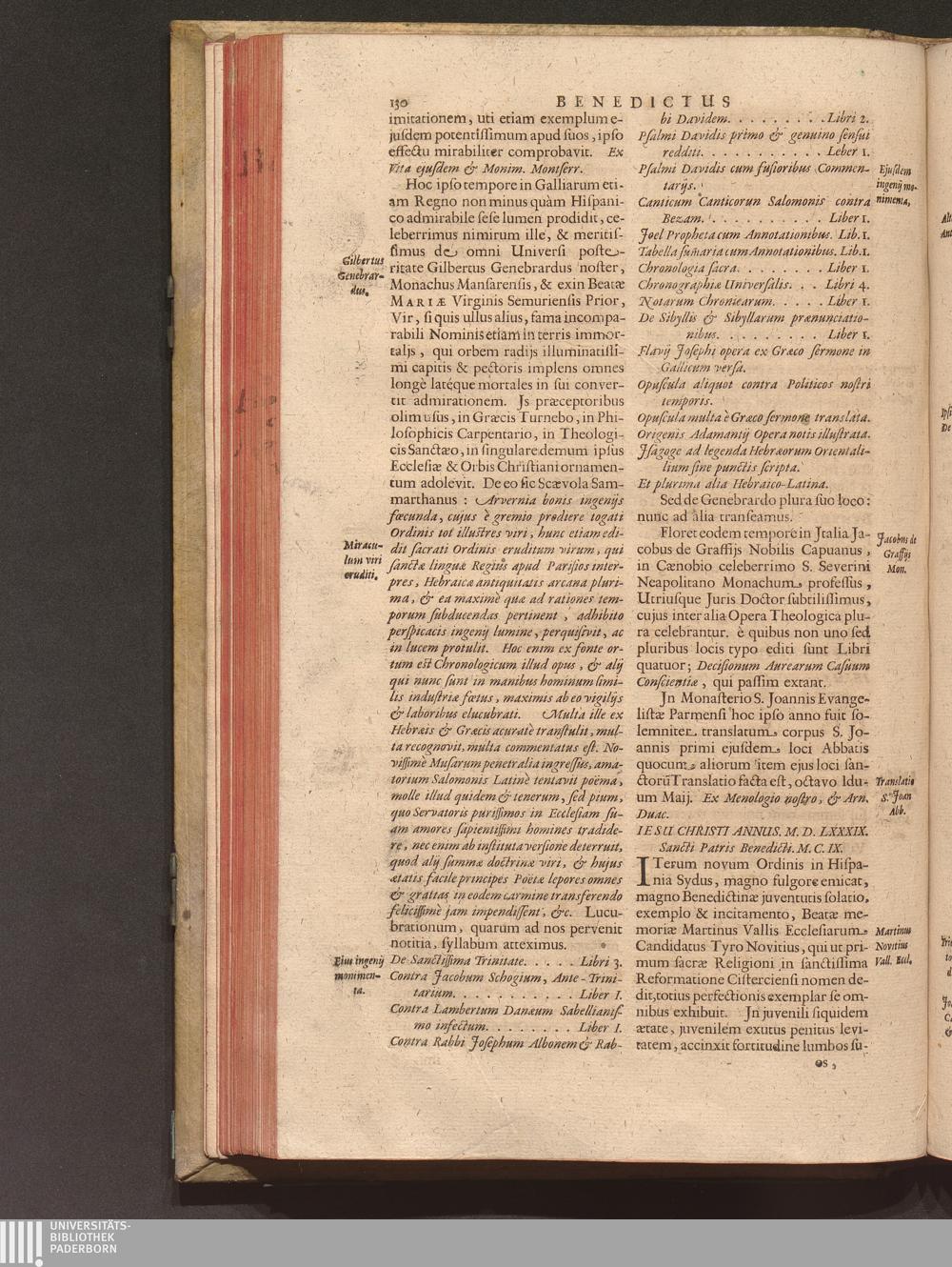 Benedictus Redivivus Hoc est: Benedictinj Ordinis Vetustißimi Amplißimique, Nostra, ac supera ætate Jmmarcescibilis Vigor, ac Viror : Anniversariâ Vernantiâ Chronologicè comprobatus, ac demonstratus Ab anno Christi M. D. Ad Præsentem Usque Ætatem, Et Annos Nostros, Jn Quo ... Operationes Jn Effusione Mirabili sui Spiritus ... quam compendiosissimè exhibe[n]tur / Opera, & Studio R. P. F. Gabrielis Bucelini Ascetæ Benedictini Imperialis Monasterij VVeingartensis Prioris S. Joannis Bapt. in Oppido Rhætiæ Superioris Veldkirchensi
