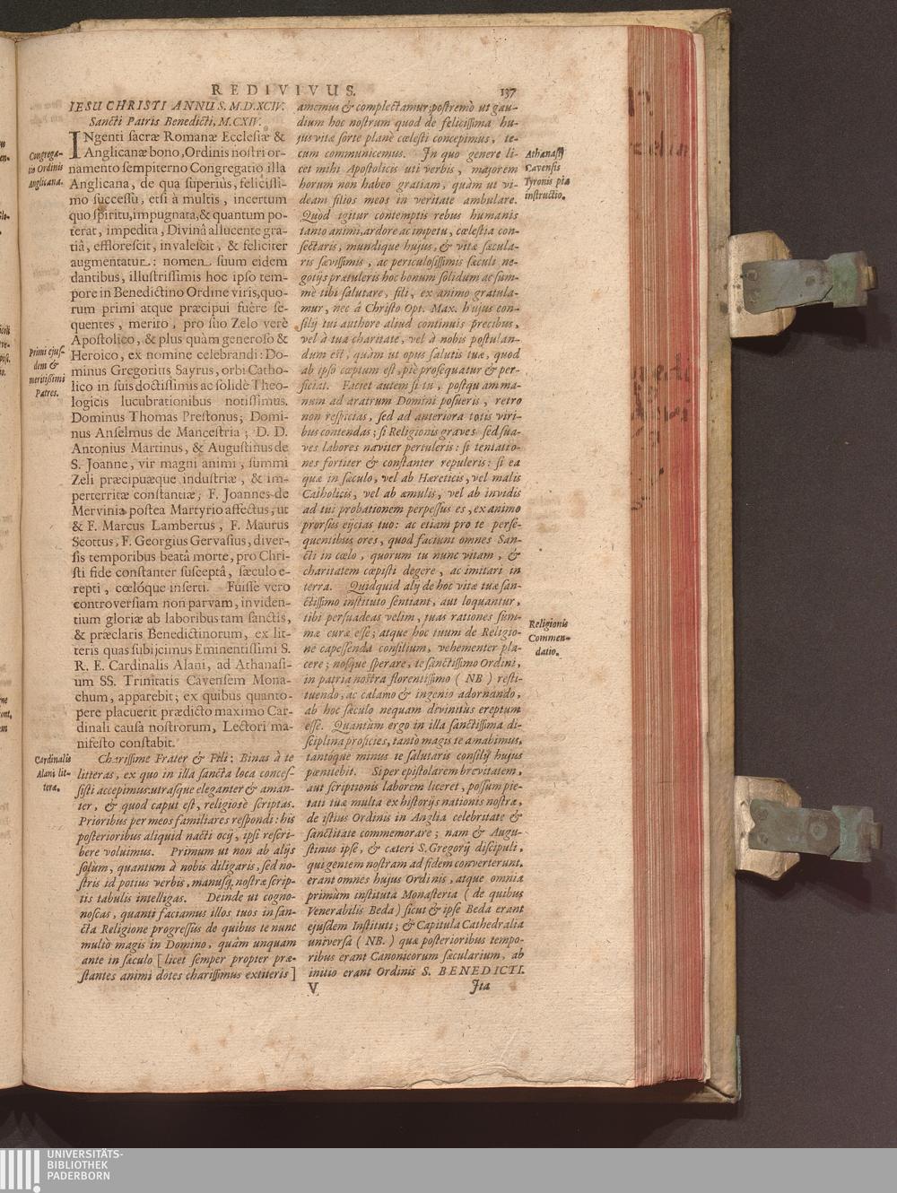 Benedictus Redivivus Hoc est: Benedictinj Ordinis Vetustißimi Amplißimique, Nostra, ac supera ætate Jmmarcescibilis Vigor, ac Viror : Anniversariâ Vernantiâ Chronologicè comprobatus, ac demonstratus Ab anno Christi M. D. Ad Præsentem Usque Ætatem, Et Annos Nostros, Jn Quo ... Operationes Jn Effusione Mirabili sui Spiritus ... quam compendiosissimè exhibe[n]tur / Opera, & Studio R. P. F. Gabrielis Bucelini Ascetæ Benedictini Imperialis Monasterij VVeingartensis Prioris S. Joannis Bapt. in Oppido Rhætiæ Superioris Veldkirchensi