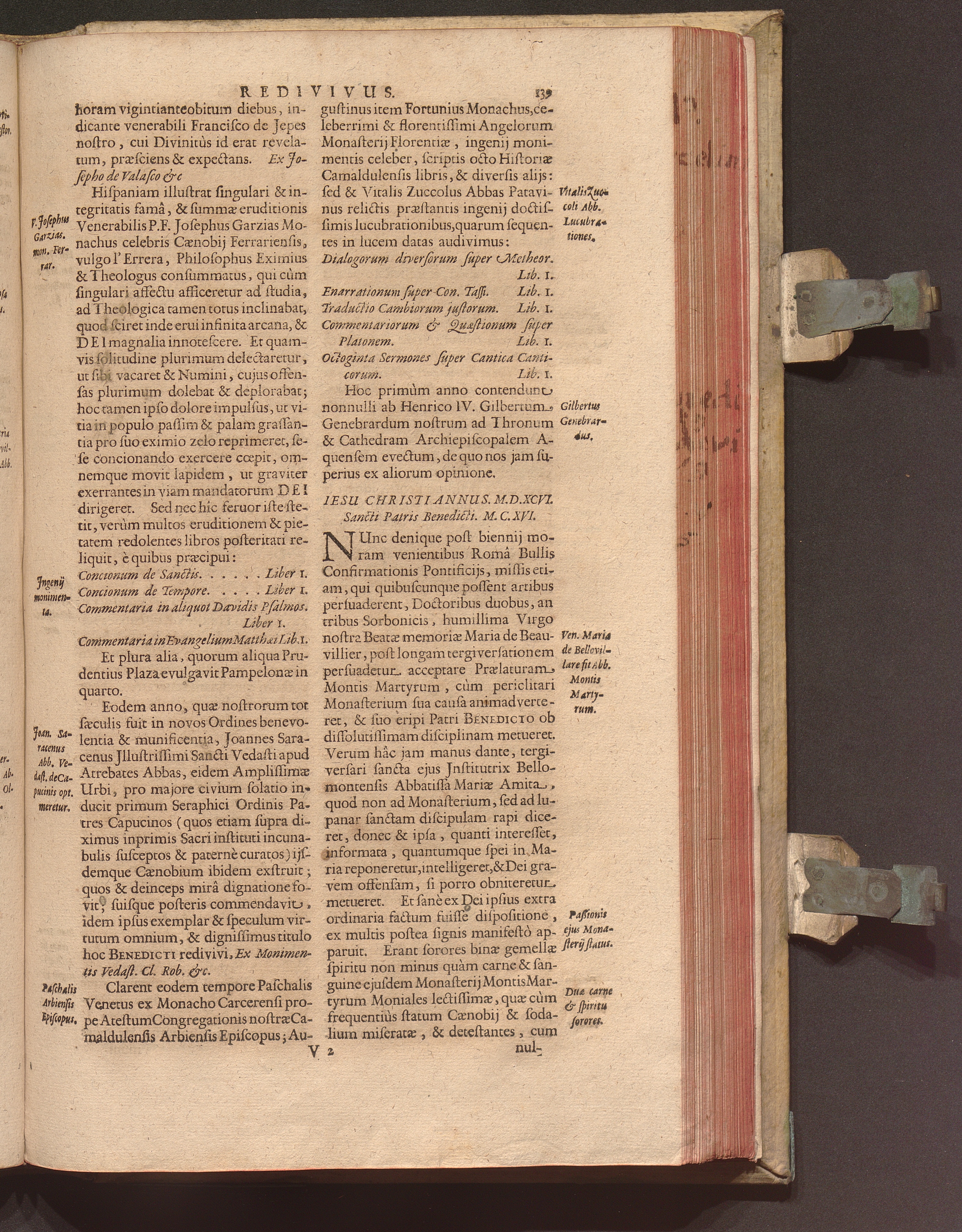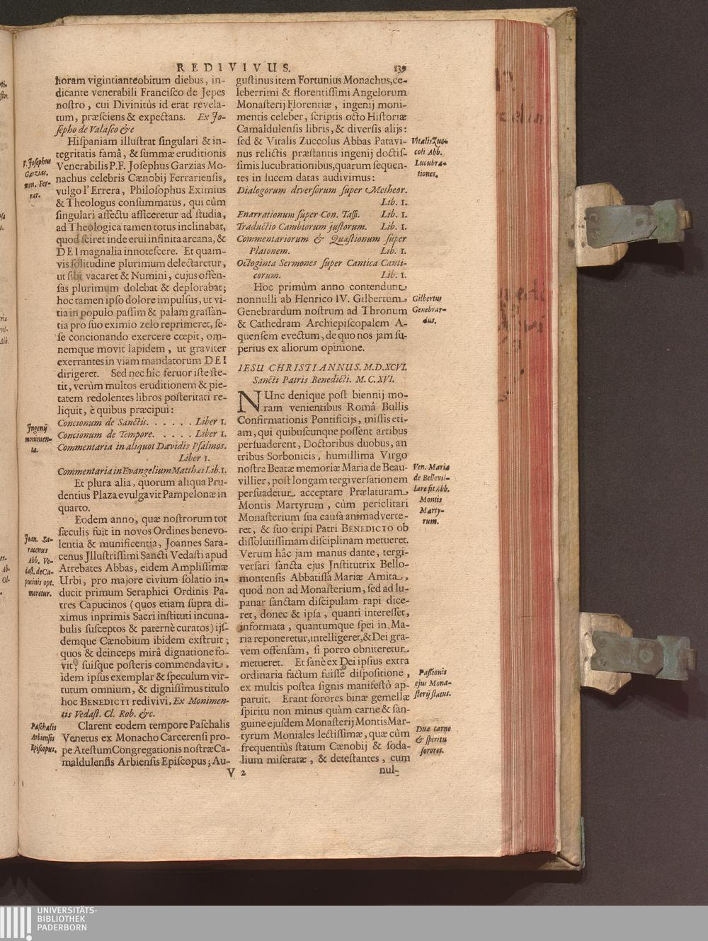 Benedictus Redivivus Hoc est: Benedictinj Ordinis Vetustißimi Amplißimique, Nostra, ac supera ætate Jmmarcescibilis Vigor, ac Viror : Anniversariâ Vernantiâ Chronologicè comprobatus, ac demonstratus Ab anno Christi M. D. Ad Præsentem Usque Ætatem, Et Annos Nostros, Jn Quo ... Operationes Jn Effusione Mirabili sui Spiritus ... quam compendiosissimè exhibe[n]tur / Opera, & Studio R. P. F. Gabrielis Bucelini Ascetæ Benedictini Imperialis Monasterij VVeingartensis Prioris S. Joannis Bapt. in Oppido Rhætiæ Superioris Veldkirchensi