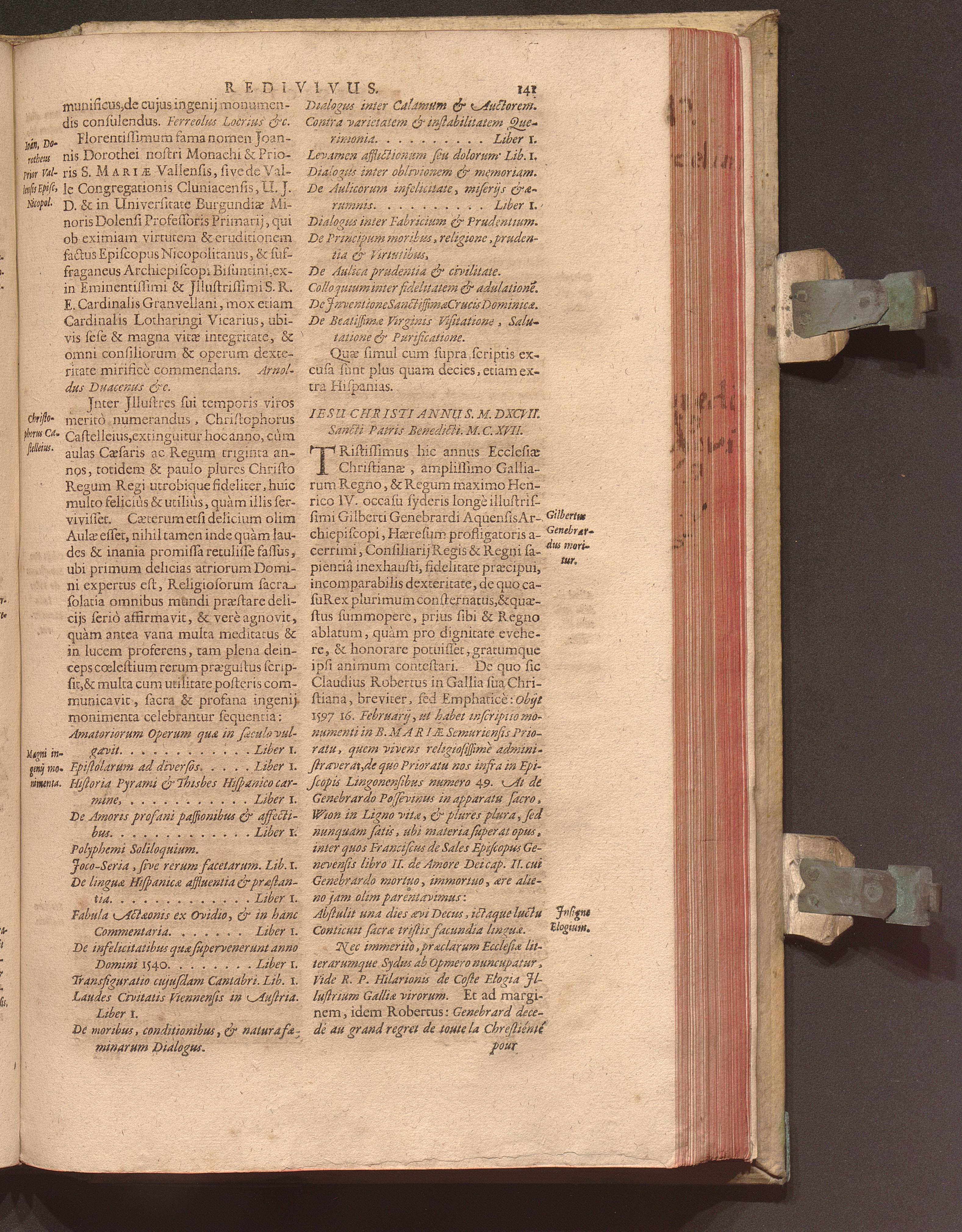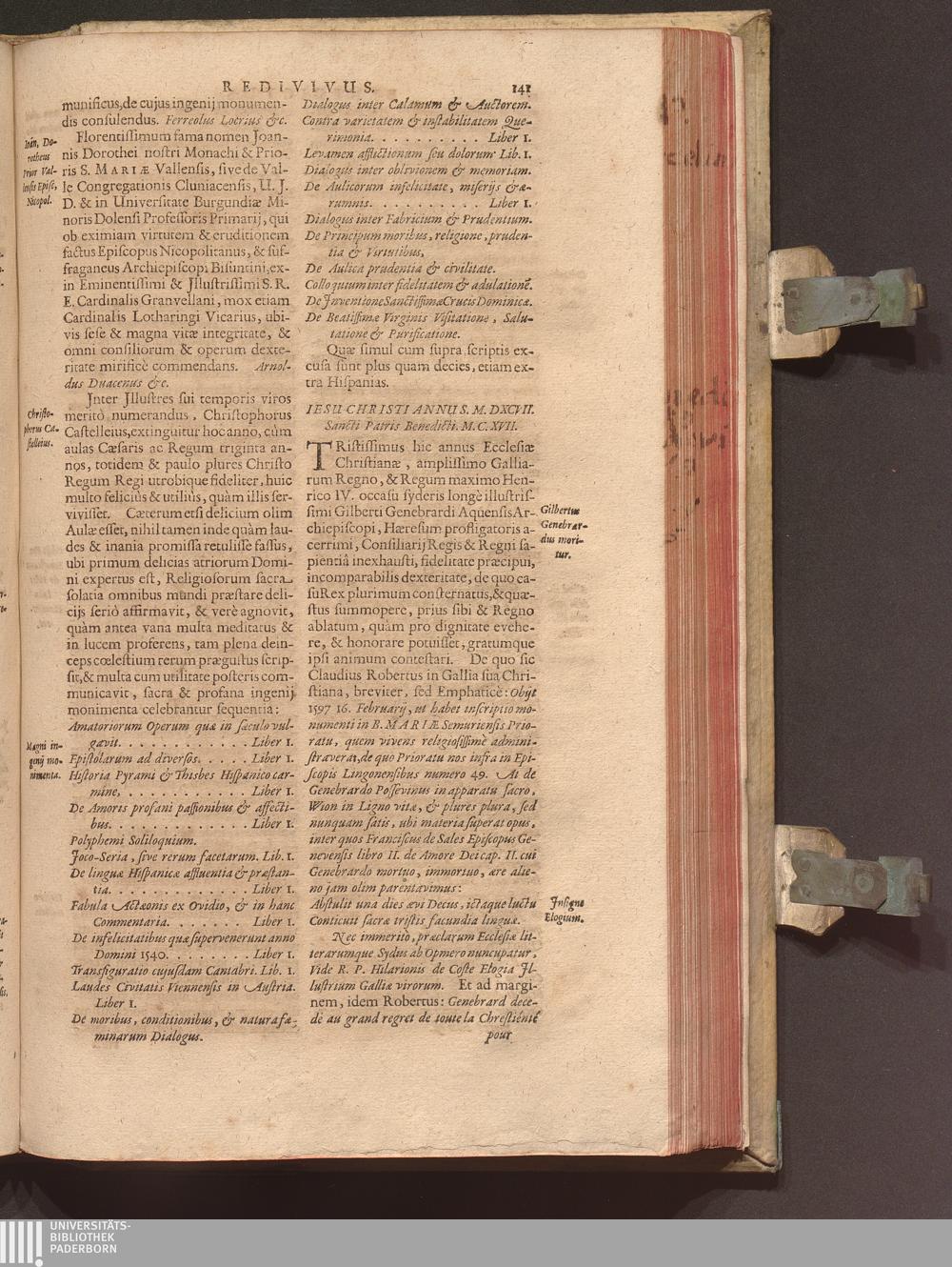 Benedictus Redivivus Hoc est: Benedictinj Ordinis Vetustißimi Amplißimique, Nostra, ac supera ætate Jmmarcescibilis Vigor, ac Viror : Anniversariâ Vernantiâ Chronologicè comprobatus, ac demonstratus Ab anno Christi M. D. Ad Præsentem Usque Ætatem, Et Annos Nostros, Jn Quo ... Operationes Jn Effusione Mirabili sui Spiritus ... quam compendiosissimè exhibe[n]tur / Opera, & Studio R. P. F. Gabrielis Bucelini Ascetæ Benedictini Imperialis Monasterij VVeingartensis Prioris S. Joannis Bapt. in Oppido Rhætiæ Superioris Veldkirchensi