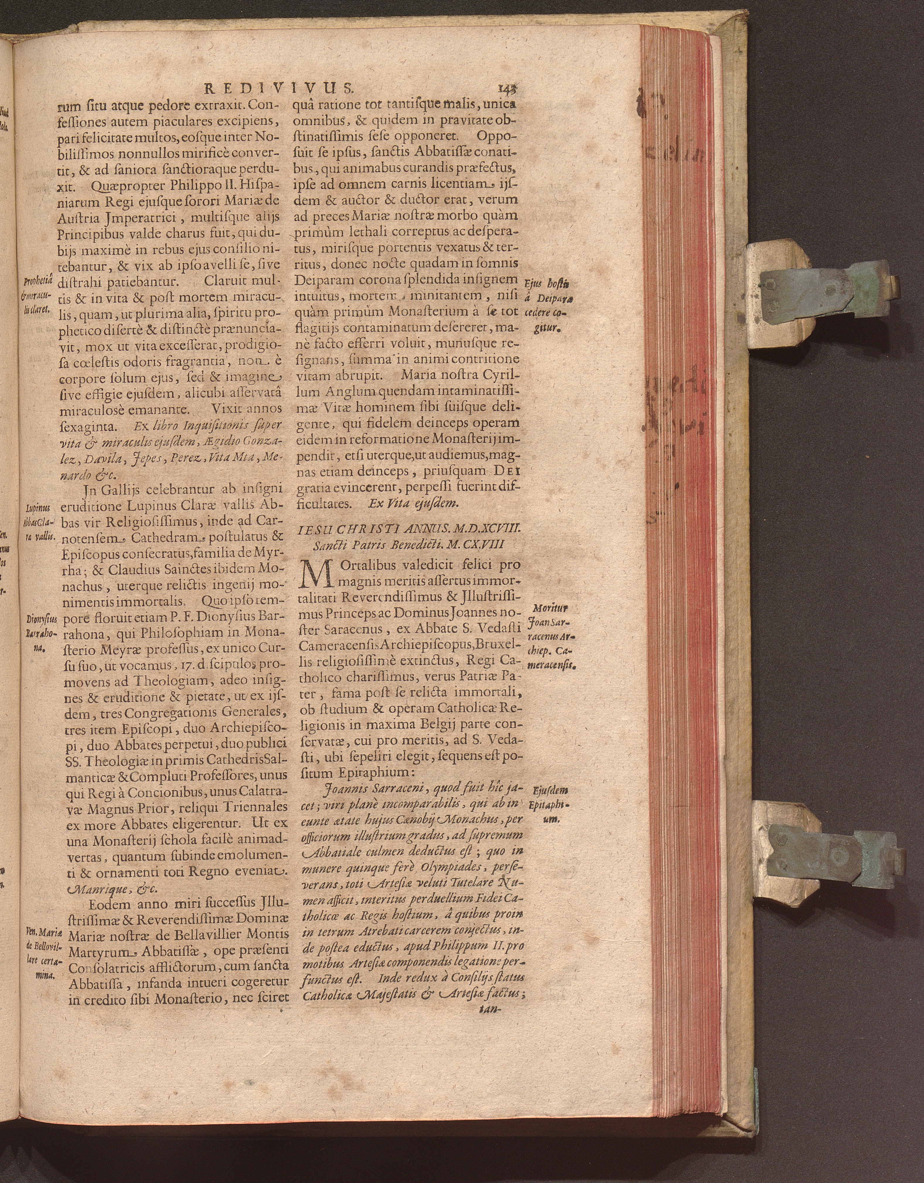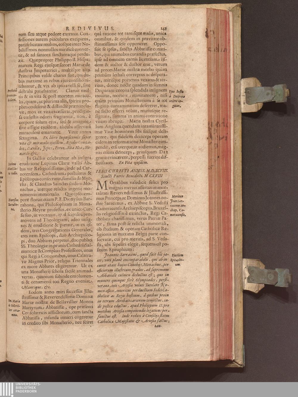 Benedictus Redivivus Hoc est: Benedictinj Ordinis Vetustißimi Amplißimique, Nostra, ac supera ætate Jmmarcescibilis Vigor, ac Viror : Anniversariâ Vernantiâ Chronologicè comprobatus, ac demonstratus Ab anno Christi M. D. Ad Præsentem Usque Ætatem, Et Annos Nostros, Jn Quo ... Operationes Jn Effusione Mirabili sui Spiritus ... quam compendiosissimè exhibe[n]tur / Opera, & Studio R. P. F. Gabrielis Bucelini Ascetæ Benedictini Imperialis Monasterij VVeingartensis Prioris S. Joannis Bapt. in Oppido Rhætiæ Superioris Veldkirchensi