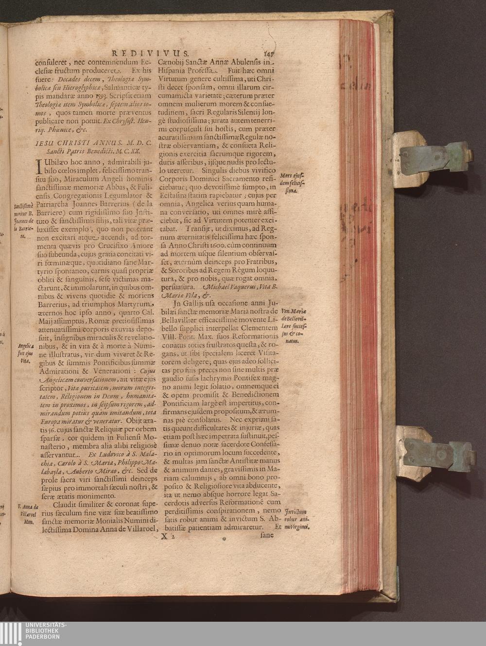 Benedictus Redivivus Hoc est: Benedictinj Ordinis Vetustißimi Amplißimique, Nostra, ac supera ætate Jmmarcescibilis Vigor, ac Viror : Anniversariâ Vernantiâ Chronologicè comprobatus, ac demonstratus Ab anno Christi M. D. Ad Præsentem Usque Ætatem, Et Annos Nostros, Jn Quo ... Operationes Jn Effusione Mirabili sui Spiritus ... quam compendiosissimè exhibe[n]tur / Opera, & Studio R. P. F. Gabrielis Bucelini Ascetæ Benedictini Imperialis Monasterij VVeingartensis Prioris S. Joannis Bapt. in Oppido Rhætiæ Superioris Veldkirchensi