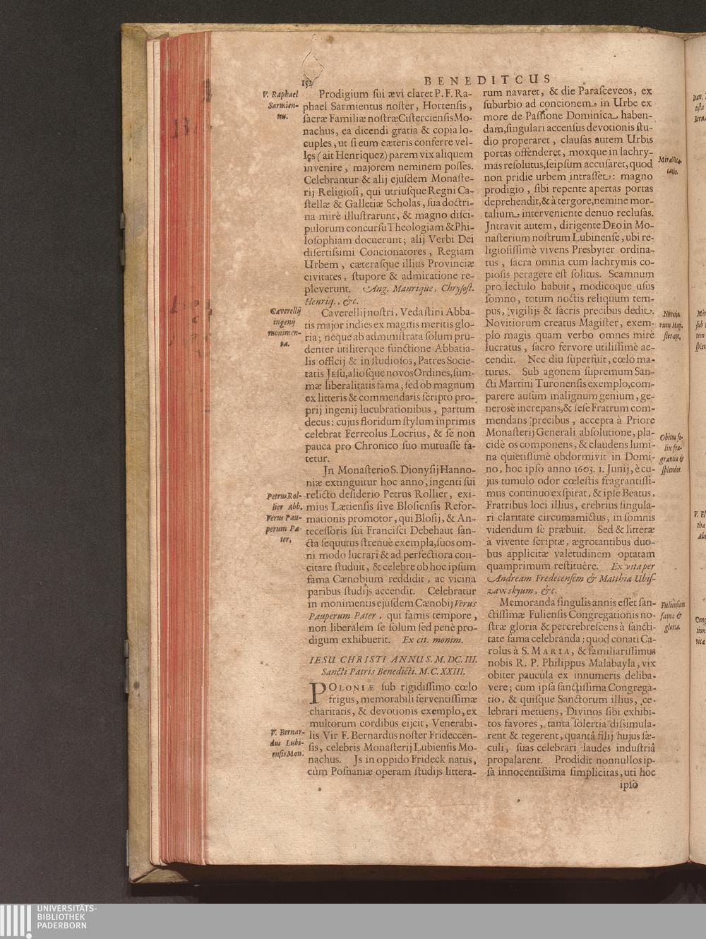 Benedictus Redivivus Hoc est: Benedictinj Ordinis Vetustißimi Amplißimique, Nostra, ac supera ætate Jmmarcescibilis Vigor, ac Viror : Anniversariâ Vernantiâ Chronologicè comprobatus, ac demonstratus Ab anno Christi M. D. Ad Præsentem Usque Ætatem, Et Annos Nostros, Jn Quo ... Operationes Jn Effusione Mirabili sui Spiritus ... quam compendiosissimè exhibe[n]tur / Opera, & Studio R. P. F. Gabrielis Bucelini Ascetæ Benedictini Imperialis Monasterij VVeingartensis Prioris S. Joannis Bapt. in Oppido Rhætiæ Superioris Veldkirchensi